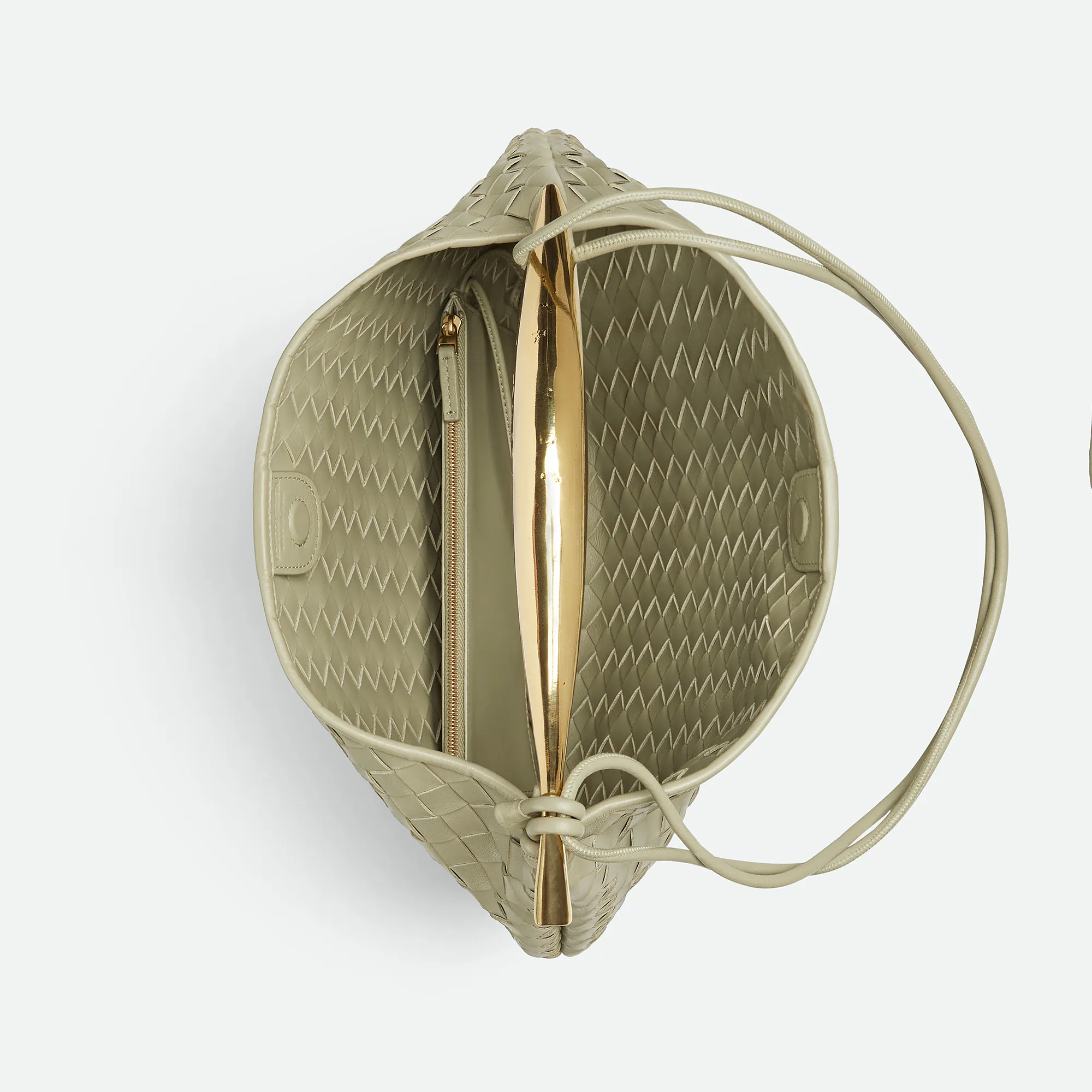 Shoulder bag with Intrecciato craftsmanship in lambskin leather with sculptural metallic top handle and shoulder strap.This bag is eligible for Certificate of Craft.