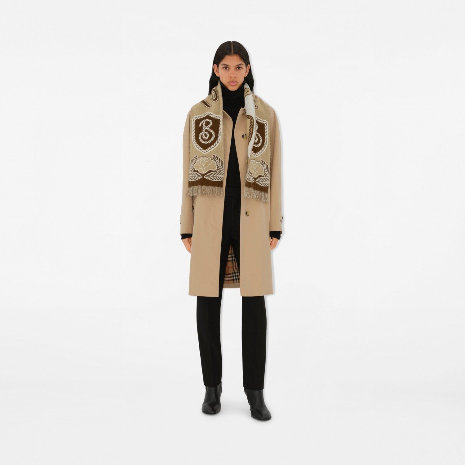 A scarf made in China from wool cashmere. Inspired by sports styles, the design is jacquard-woven with our logo, B shield and rose motifs.