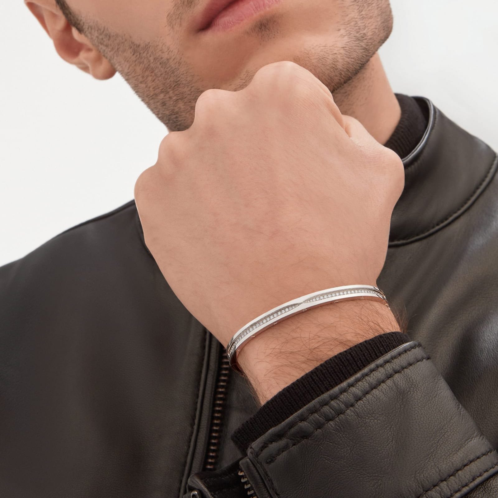 Drawing its inspiration from the most renowned amphitheatre in the world, the Colosseum, B.zero1 is a groundbreaking statement of Bvlgari’s creative vision and a true icon of Italian design. Challenging the very essence of jewellery aesthetics, its distinctive spiral is a metaphor for the harmony of past, present and future – reflected in the magnificence of the Eternal City – and the emblem of the pioneering spirit of the collection. B.zero1 bracelet in 18 kt white gold with pave diamonds.