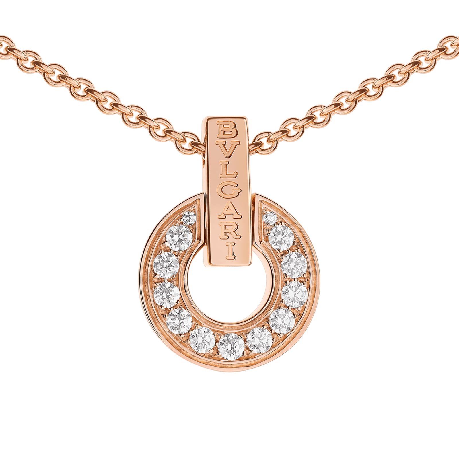 Bvlgari Bvlgari Openwork necklace in 18 kt rose gold with full pave diamonds.