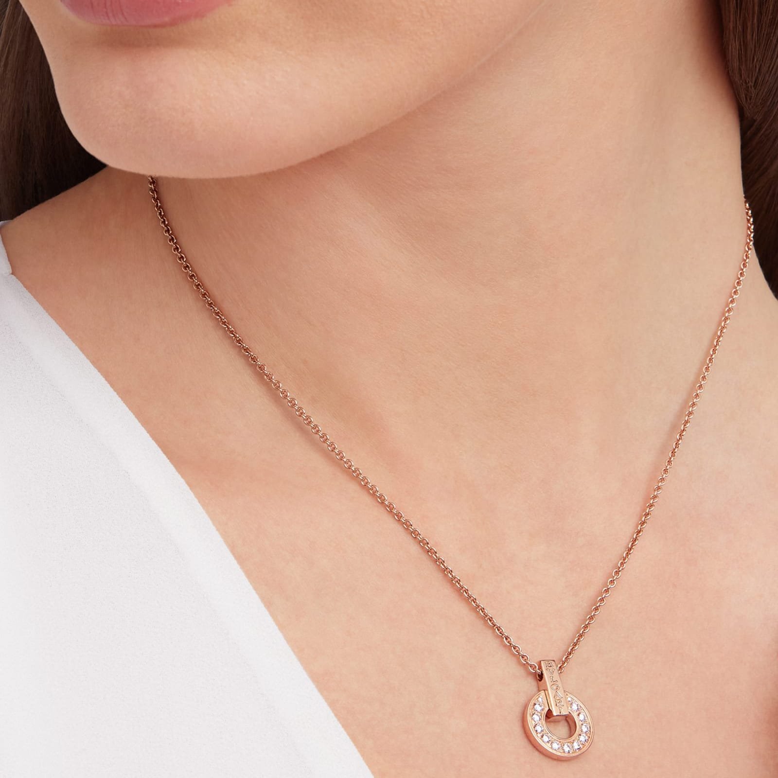 Grown from the Roman roots of the brand into an elegant fusion of culture and modernity, the Bvlgari Bvlgari necklace is an effervescent and contemporary statement of classiness. The collection’s iconic circular motif has here evolved into a fresh openwork design, blending striking shapes with Bvlgari’s unmatched playful spirit and distinctive use of diamonds.
