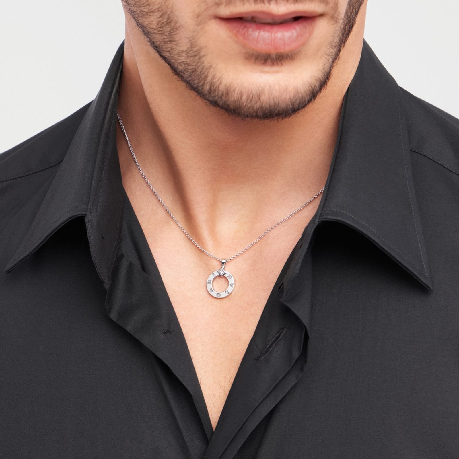 Inspired by the Roman roots of the brand and created as a timeless fusion of culture and modernity, the Bvlgari Bvlgari 18 kt white gold necklace is a contemporary statement of class. Evoking the curved inscriptions on ancient Roman coins, the collection’s trademark logo is engraved on the round pendant as a distinctive element of design, while an exquisite carre diamond adds a touch of precious brilliance to the jewel. Versatile and easy to wear, the necklace can be mixed and matched as you wish.