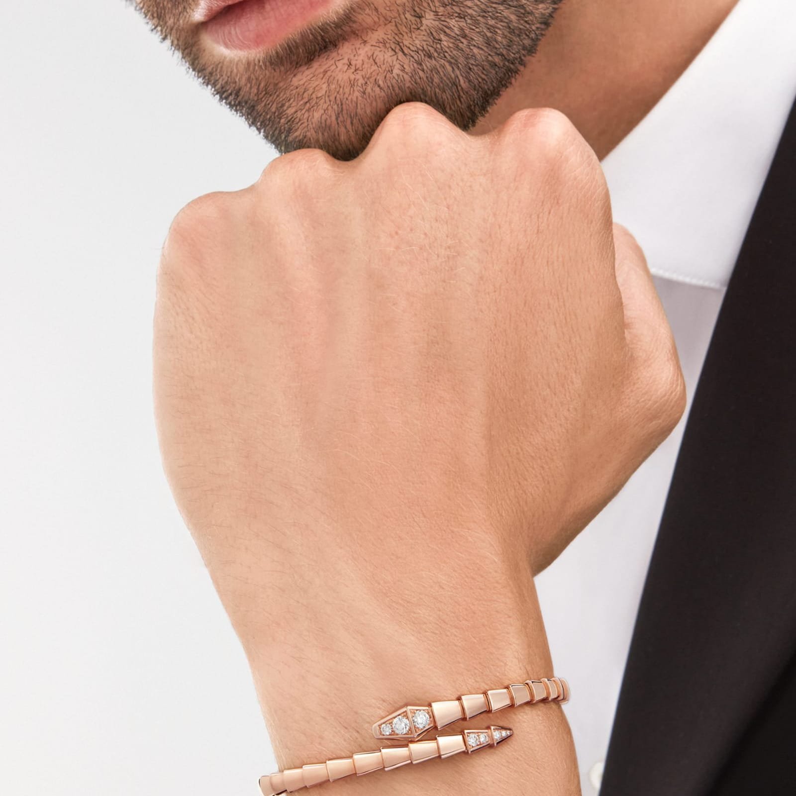With its signature blend of pure aesthetics, enveloping shapes and charismatic flair, the Serpenti Viper 18 kt rose gold bracelet with demi pave diamonds is an essential interpretation of Bvlgari’s icon of endless metamorphosis. Capturing the powerful and ever-evolving nature of the mythical serpent, the magnetic jewellery creation inspires us to embrace change as a source of strength and self-confidence. Easy to mix and match, the bracelet offers endless styling options, embodying the collection’s versatile spirit.