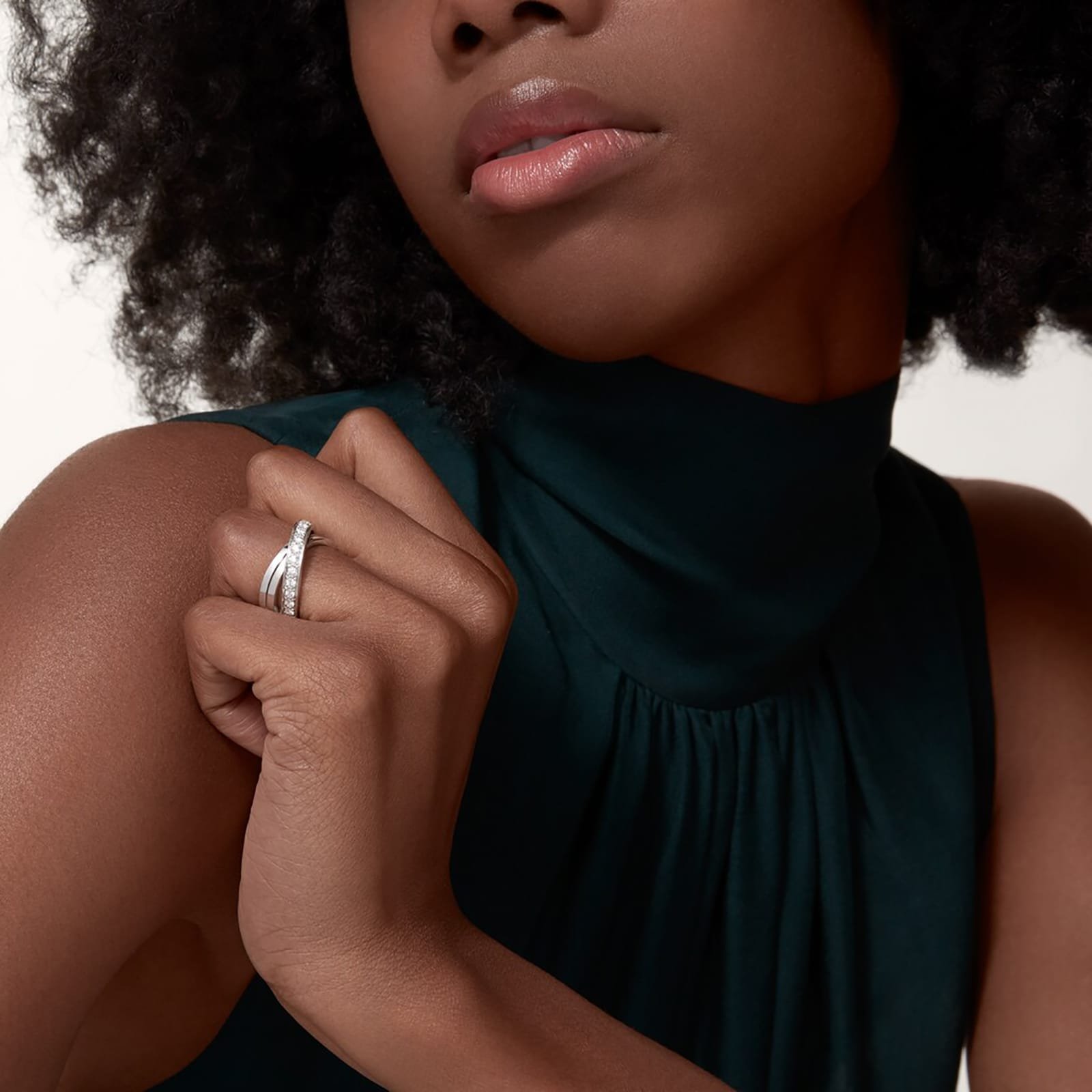 This delicate collection exudes elegance and refined simplicity. Clean lines of paved diamonds create a look of timeless radiance – a pure, feminine style.