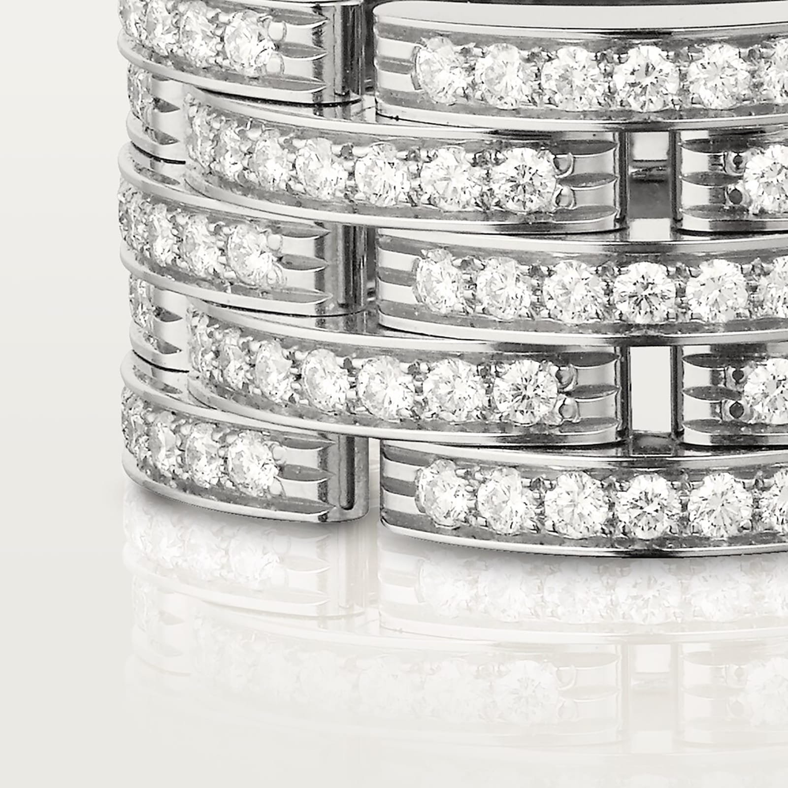 Maillon Panthere ring, white gold 750/1000, set with 175 brilliant-cut diamonds totalling 1.26 carats (for size 52).