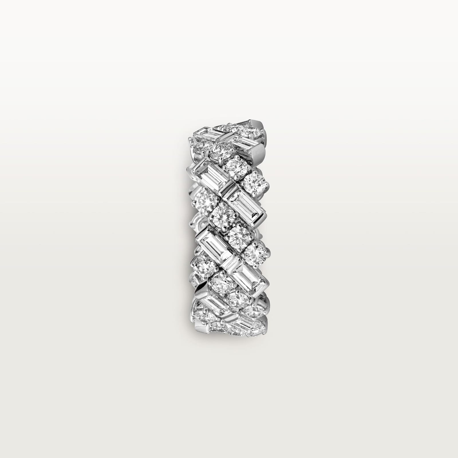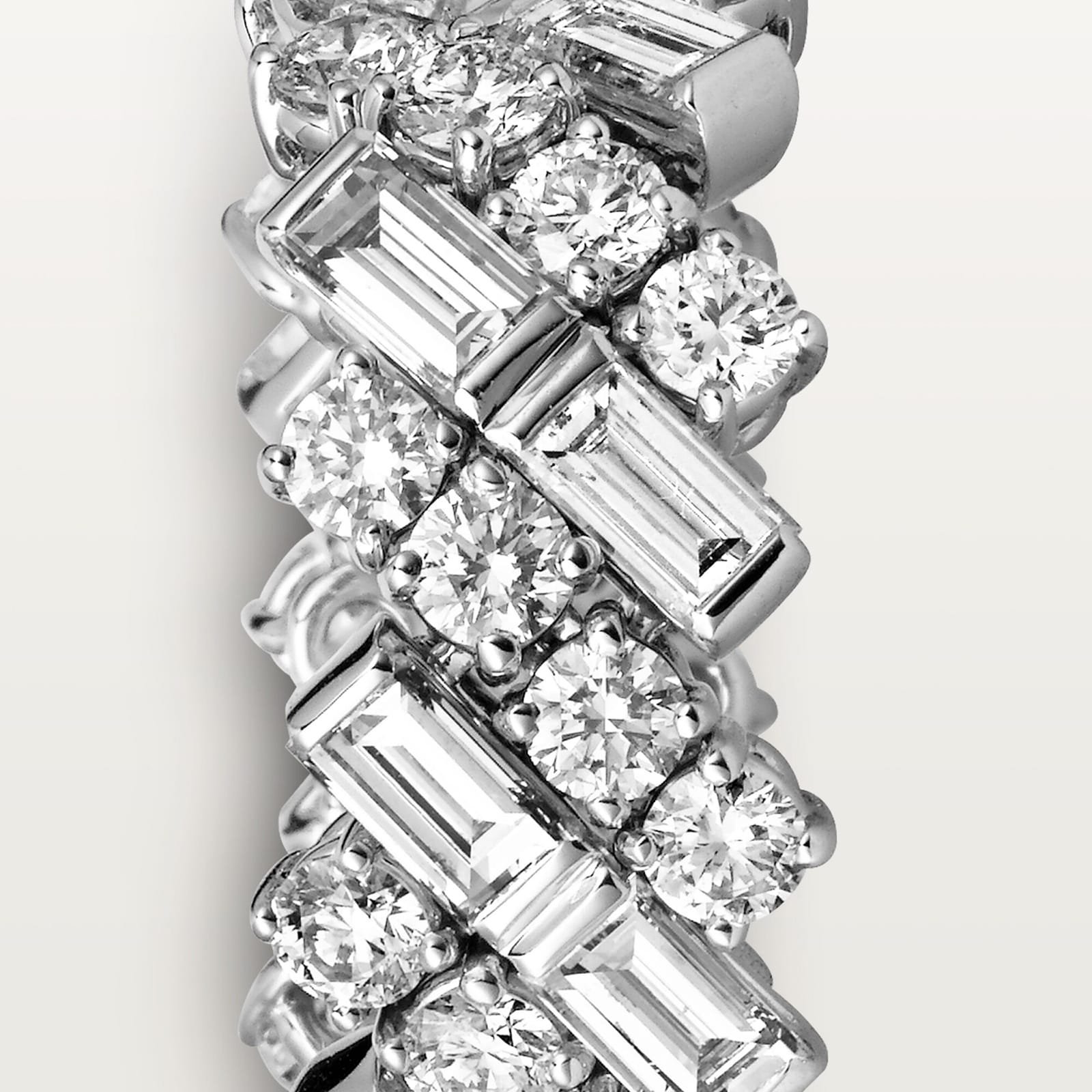 This stunning collection brings together diamonds of various cuts, creating breathtaking radiance and light. The perfectly balanced designs showcase meticulous setting and supple metalwork; the creative concept demonstrates Cartier’s powerful style.