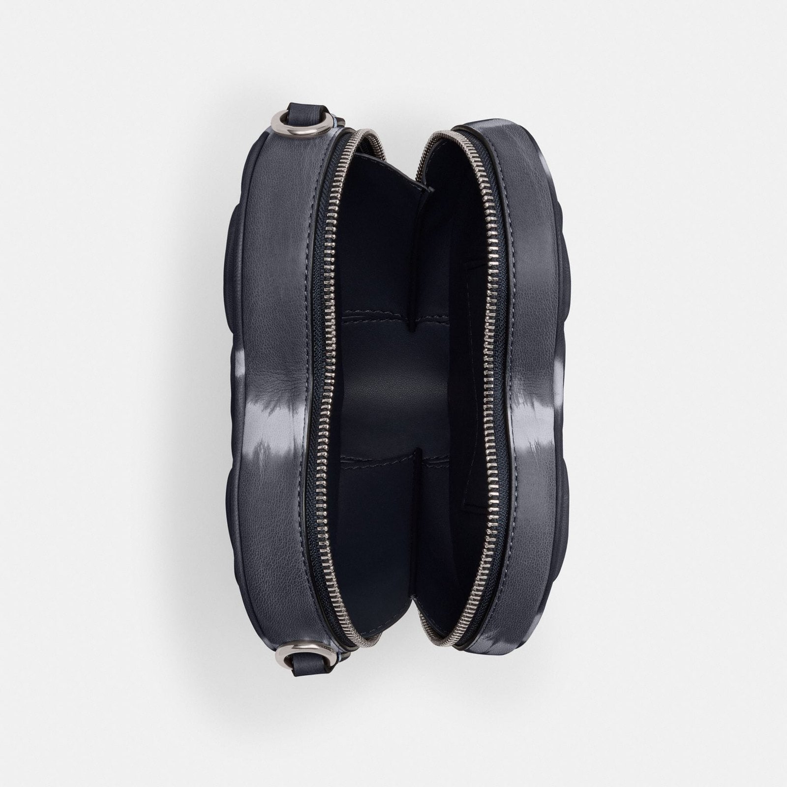 fabric lining Detachable strap with 54.5cm drop for shoulder or crossbody wear 19cm (L) x 16.5cm (H) x 5.5cm (W) Due to the special dye technique