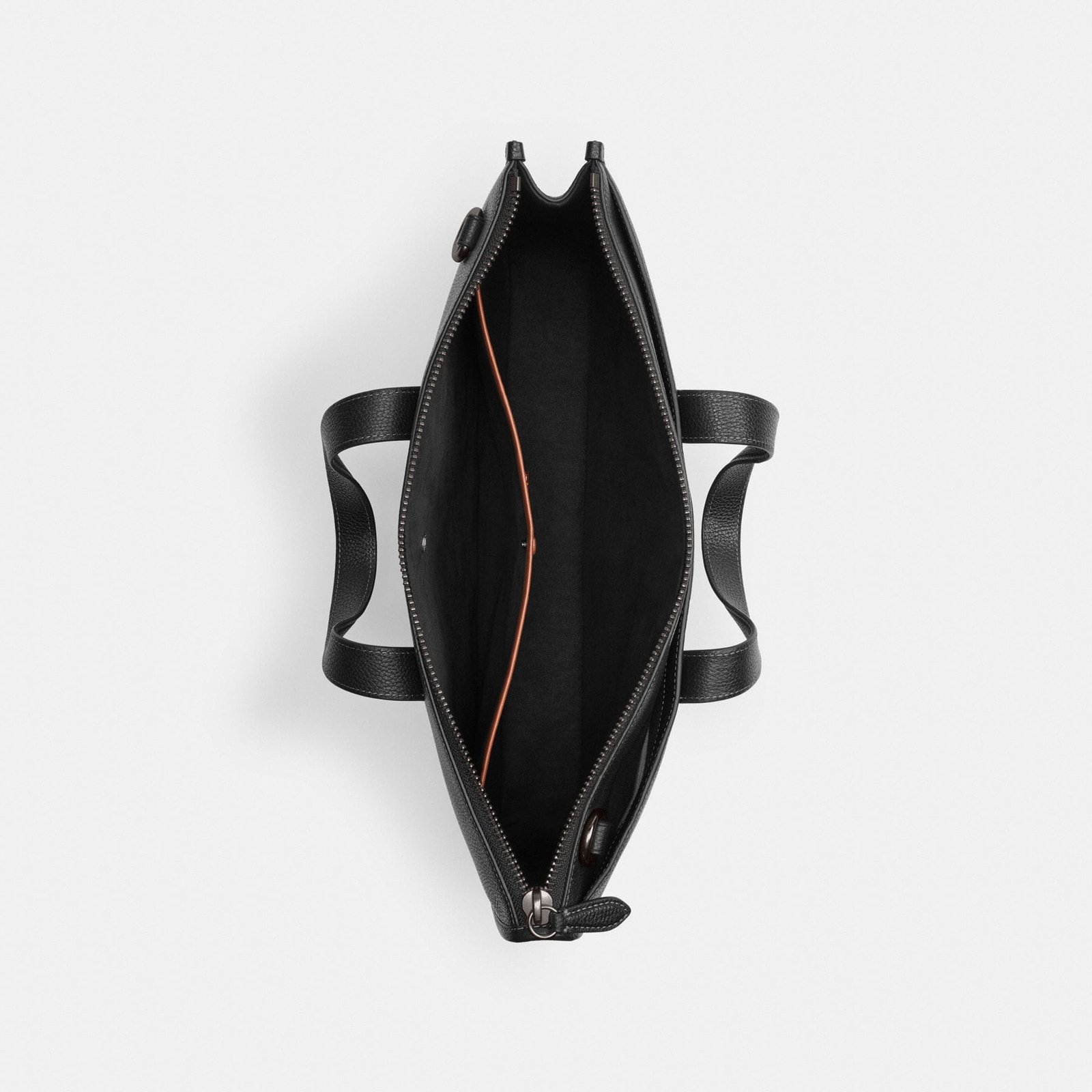 Polished pebble leather Inside snap pocket Zip-top closure, fabric lining Handles with 11cm drop Outside magnetic snap pocket Detachable strap with 55cm drop for shoulder or crossbody wear Fits a 30.5cm laptop 40cm (L) x 27cm (H) x 4.5cm (W)