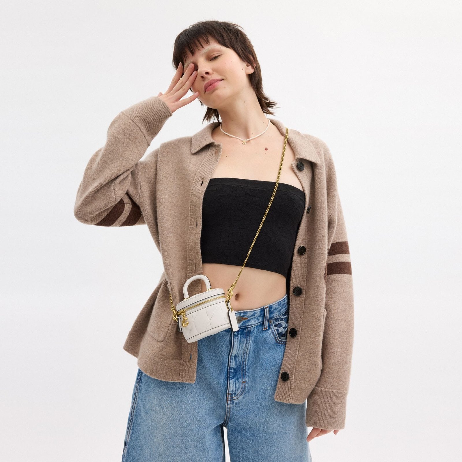 Based on a Coach design from 1994, our Trail Crossbody 12 is slightly smaller than the original. Crafted of quilted plush, ultra-soft nappa leather, it features a zip-around closure detailed with our Signature zipper pull for a heritage touch. The petite carryall is finished with a ladylike top handle and a gleaming chain crossbody strap. (Some styles are just too good to leave in the archives.)