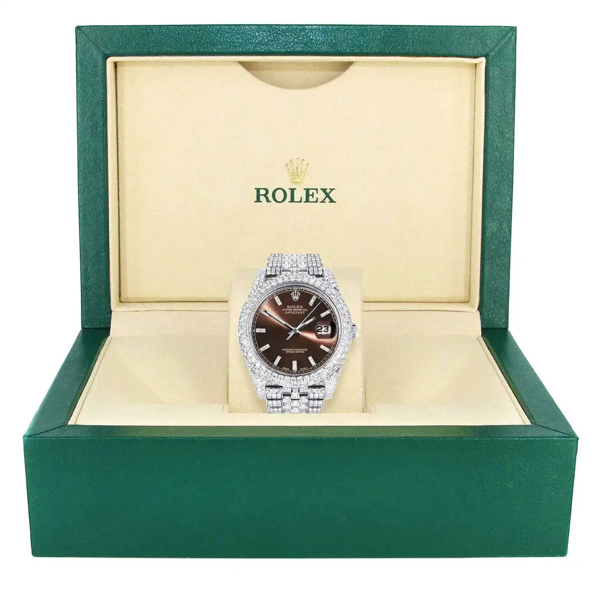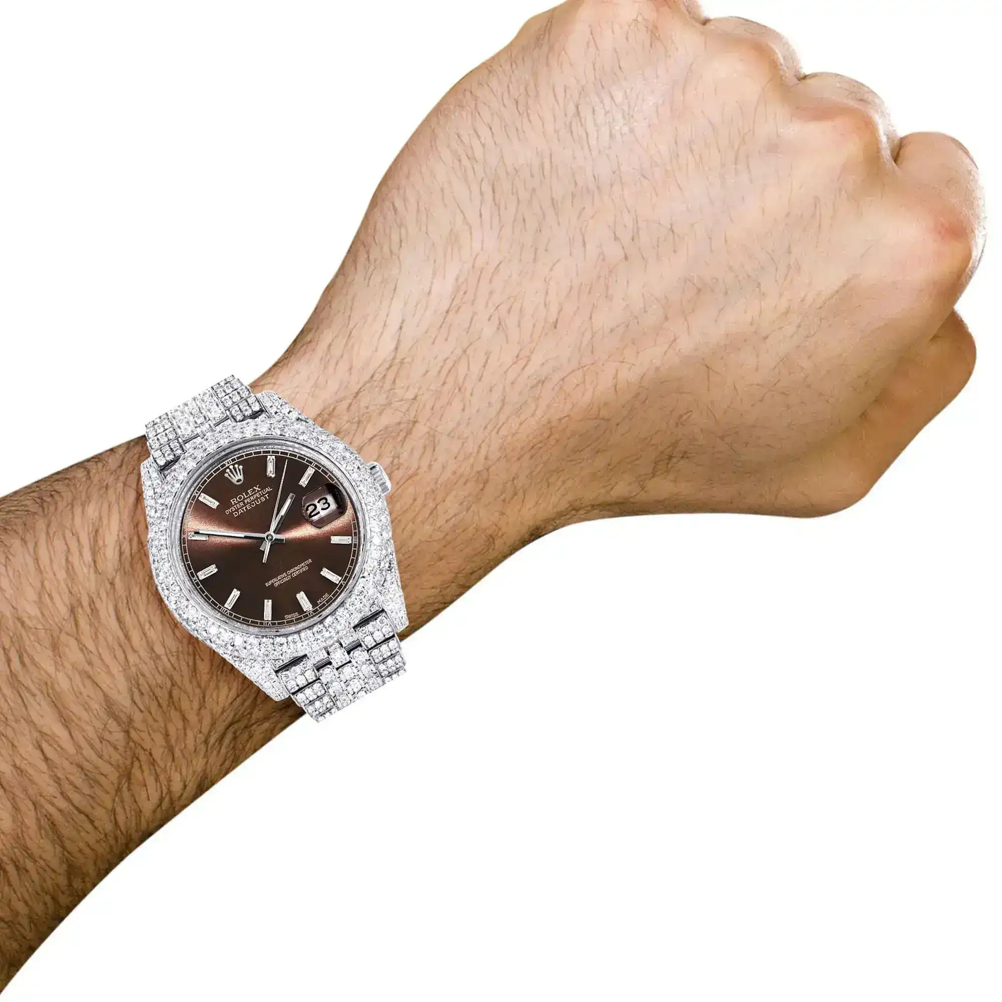 Diamond Iced Out Rolex Datejust 41 | 25 Carats Of Diamonds | Morocco Brown Diamond Dial | Two Row | Jubilee Band