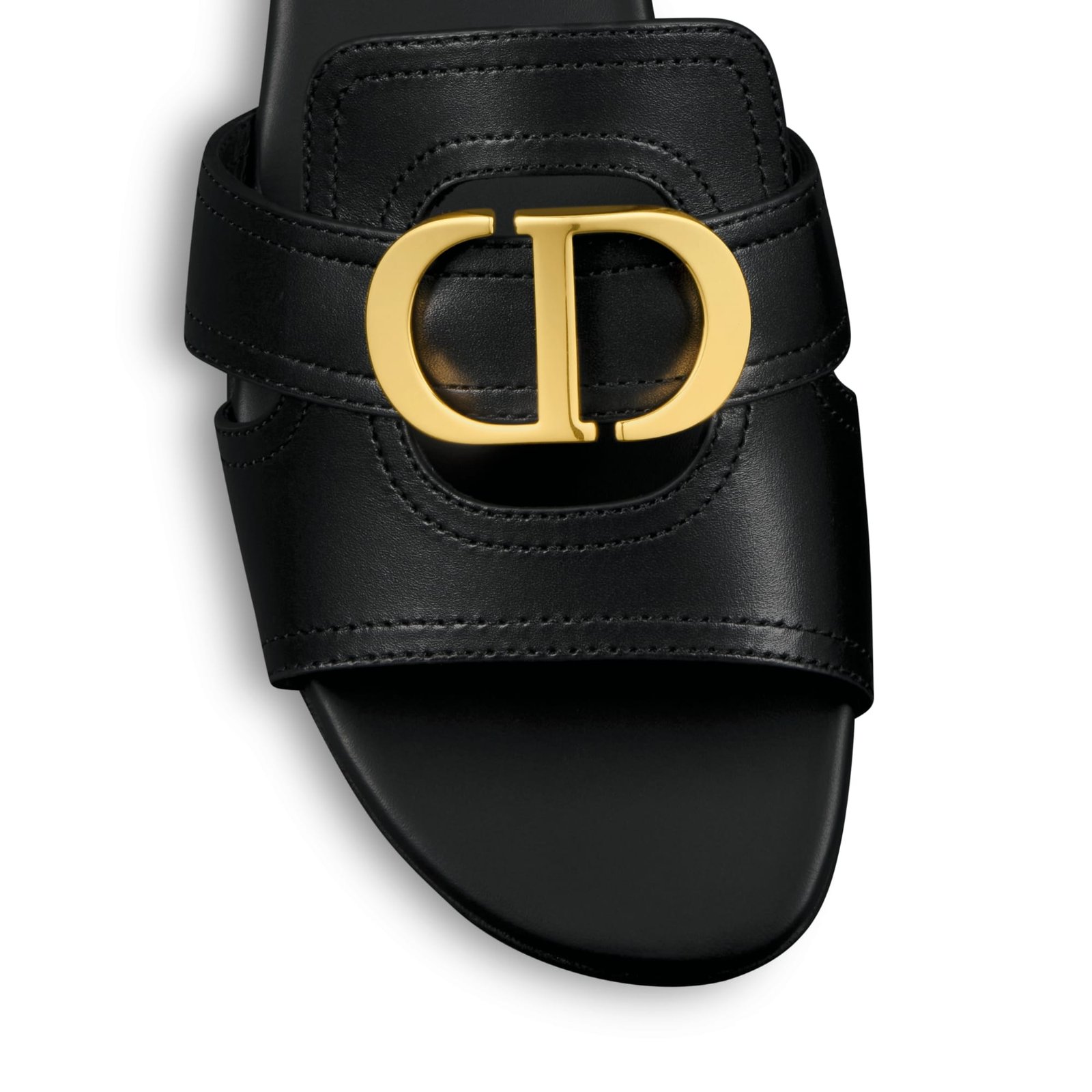 The 30 Montaigne slide is an essential Dior wardrobe piece. The gold-finish metal ‘CD’ signature highlights the silhouette and contrasts with the black calfskin. Its timeless and elegant design pairs easily with many styles.