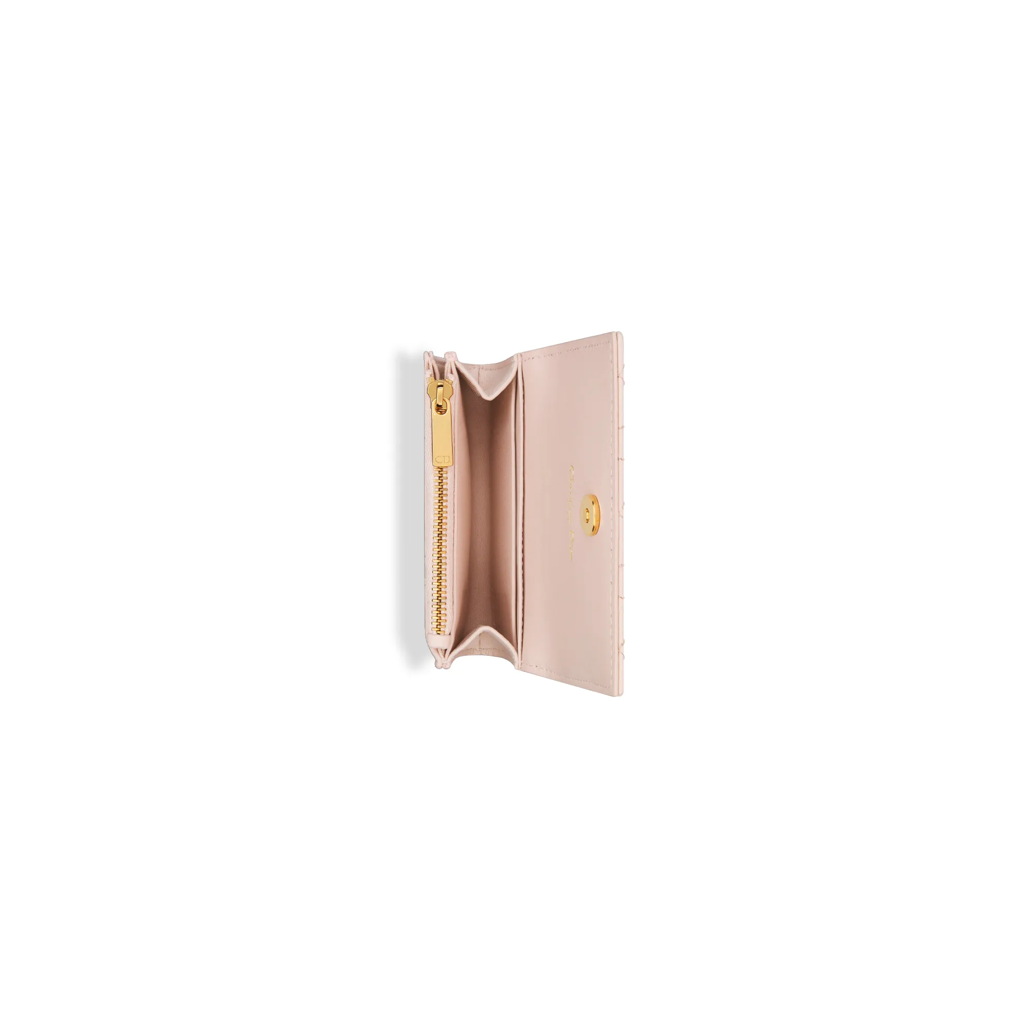 The Dior Caro Glycine wallet is distinguished by its compact and practical design. Crafted in powder pink supple calfskin with Cannage stitching, it is enhanced by the CD signature on the front. Accommodating all the essentials, the refined accessory will fit anywhere and can be paired with other Dior Caro creations.