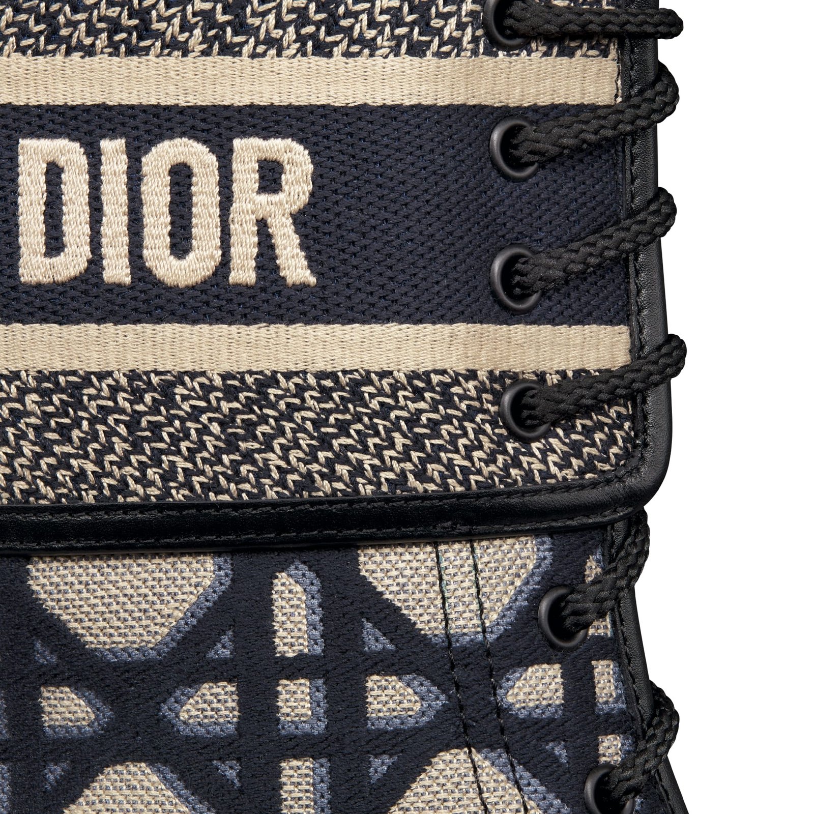 Dior D-Major Ankle Boot Black Calfskin with Deep Blue and Beige Embroidered Cannage Cotton