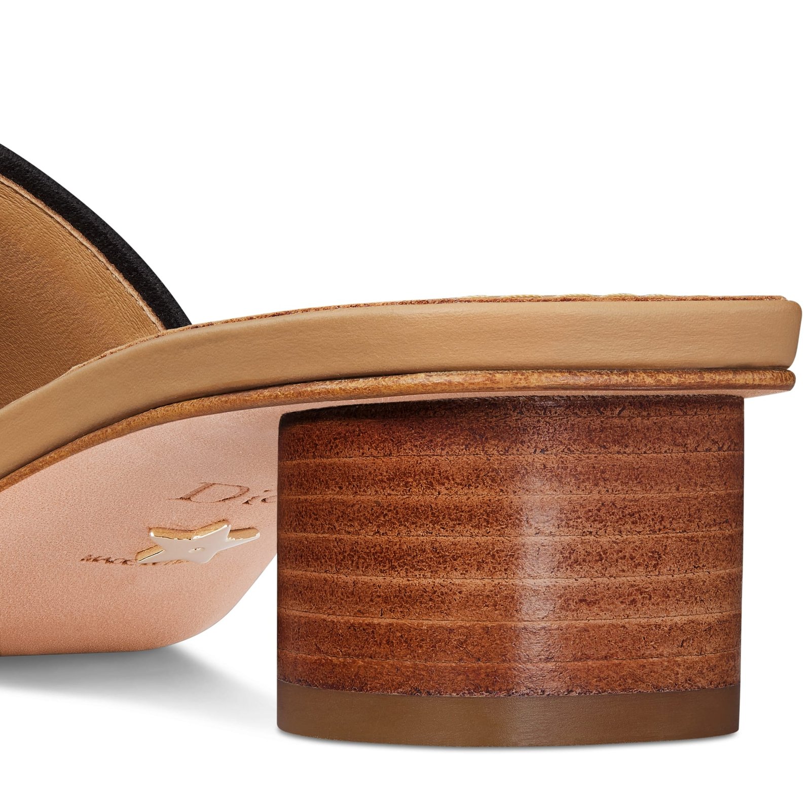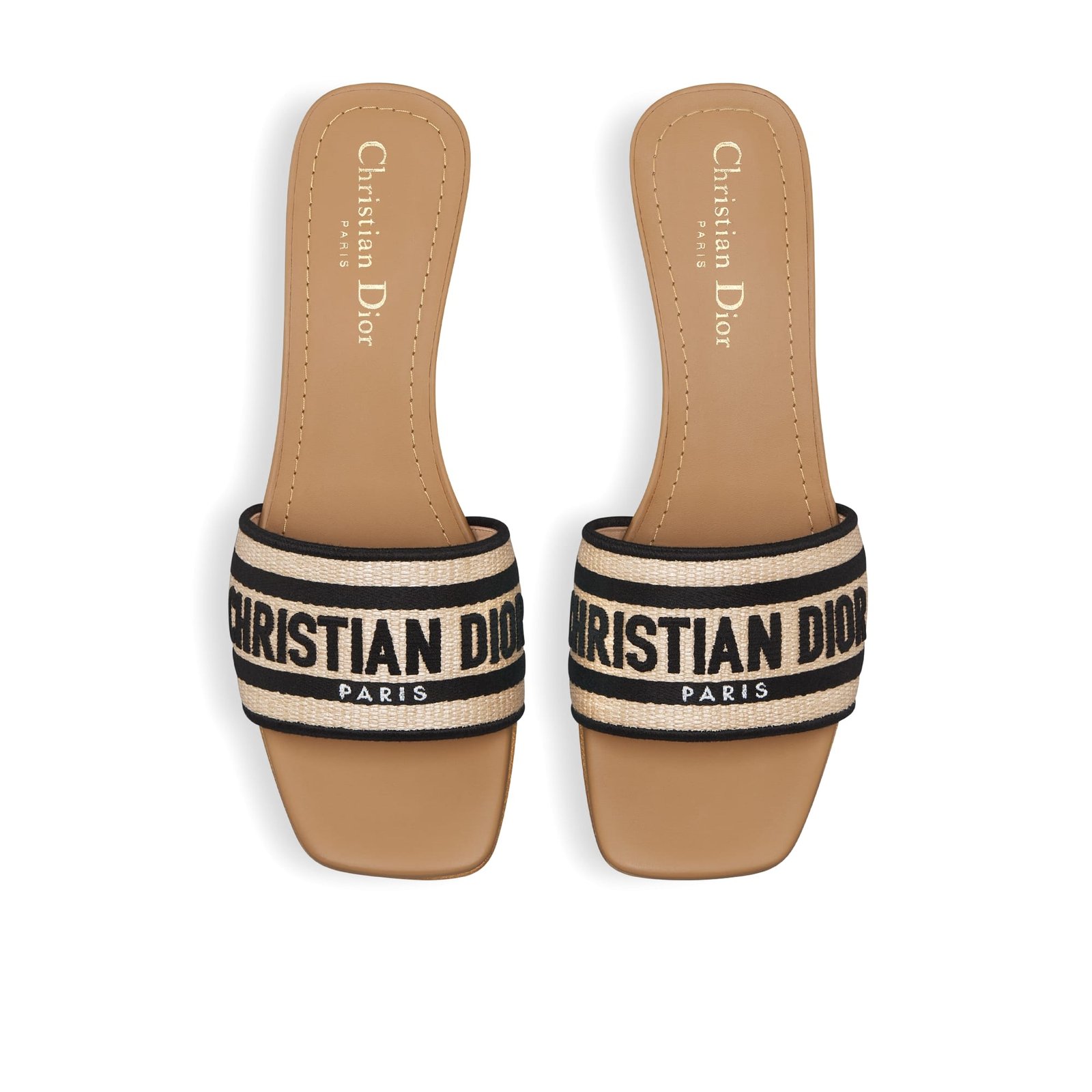 The Dway heeled slide is a hallmark and timeless design. The natural raffia and black cotton upper is embroidered with the Christian Dior Paris signature, lending an instantly recognizable touch. Completed by a 3.5-cm (1.5) cylindrical heel and square toe, the slide will elevate outfits with a modern touch.