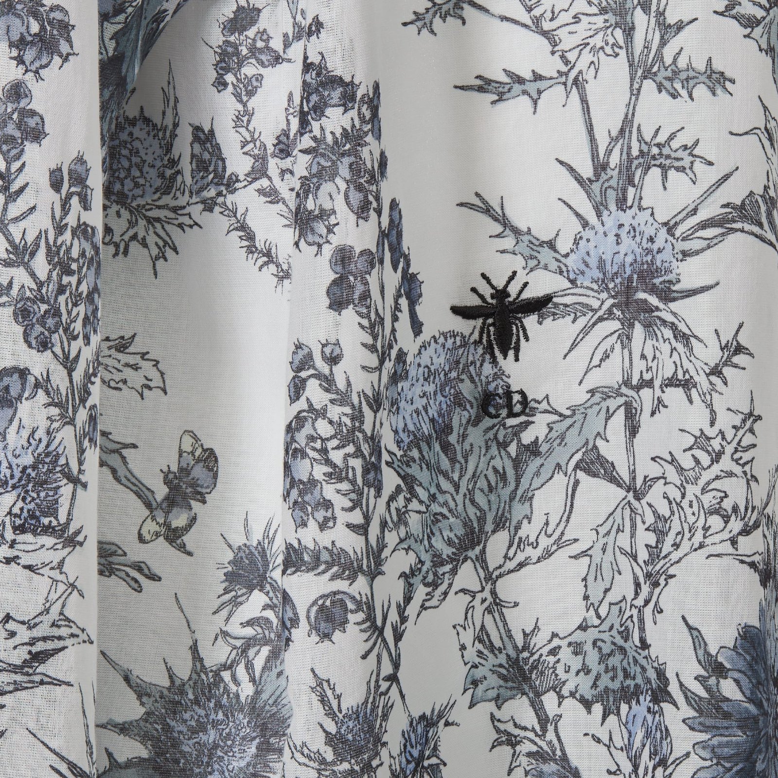 A hallmark Dior silhouette, the blouse is printed with Pietro Ruffo’s blue Dior Chardons motif and showcases the national flower of Scotland, which symbolizes protection, resilience and freedom. Crafted in white cotton muslin, it features a modern design that is longer in the back, an officer collar and a button closure in the front. The blouse can be paired with other Dior Chardons creations.