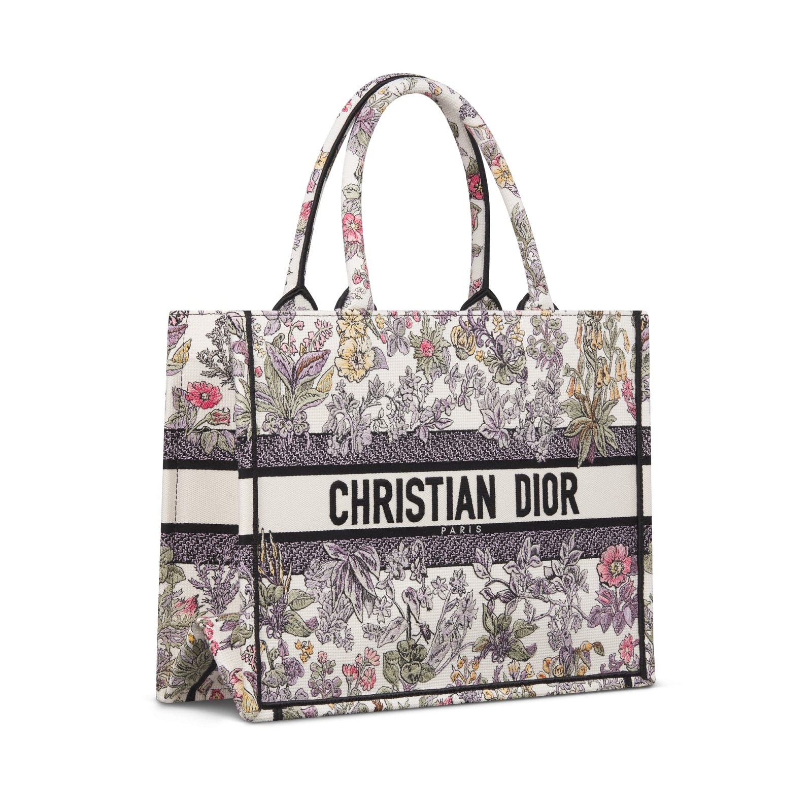Introduced by Maria Grazia Chiuri, Creative Director of Christian Dior, the Dior Book Tote has become a staple of the Dior aesthetic. Created to hold all the daily essentials, the latte style is fully embroidered with the multicolor Millefiori Unicorn motif by Pietro Ruffo, showcasing a symbol from Scottish mythology, the unicorn, within a poetic floral pattern. Adorned with the Christian Dior Paris signature on the front, the medium tote exemplifies the House’s savoir-faire and can be carried by hand or worn over the shoulder. The bag can be coordinated with the season’s other Millefiori Unicorn creations.