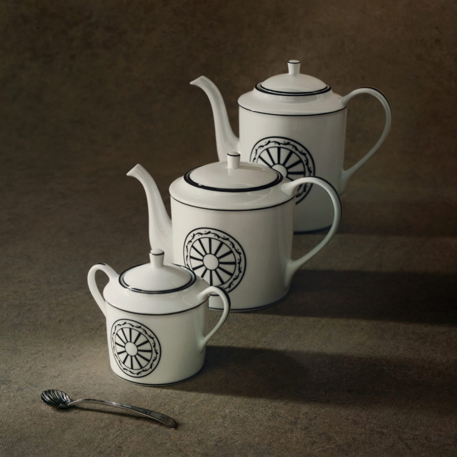 Teapot in extra fine Limoges porcelain with black and white stripes.