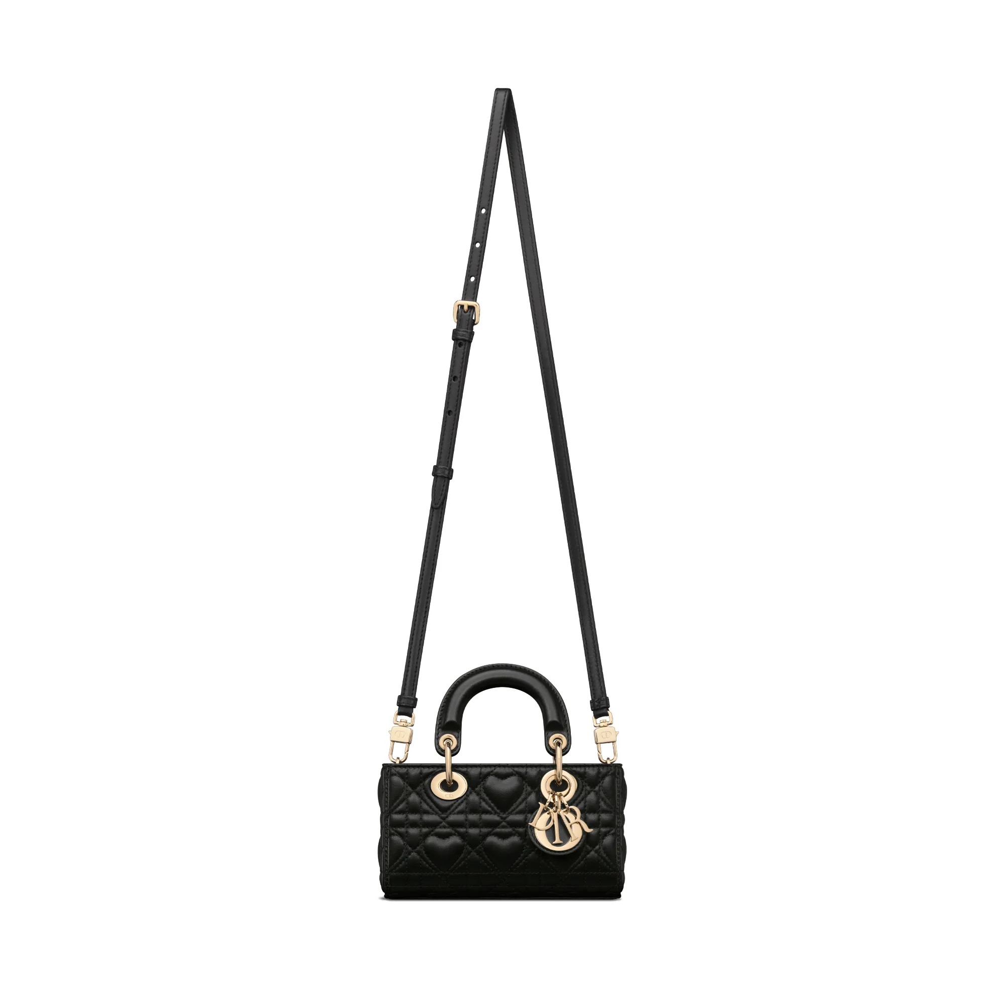 Part of the Dioramour capsule, the Lady D-Joy micro bag captures the House’s vision of elegance and beauty by showcasing the iconic streamlined aesthetic of the Lady Dior line. Crafted in black lambskin with Cannage stitching elevated by a heart motif, the design is adorned with detachable pale gold-finish metal D.I.O.R. charms. Featuring one removable chain strap and another adjustable and removable leather strap, the Lady D-Joy bag can be carried by hand, worn over the shoulder or crossbody as a day or evening companion. The style can be coordinated with other Dioramour creations to complete the look.