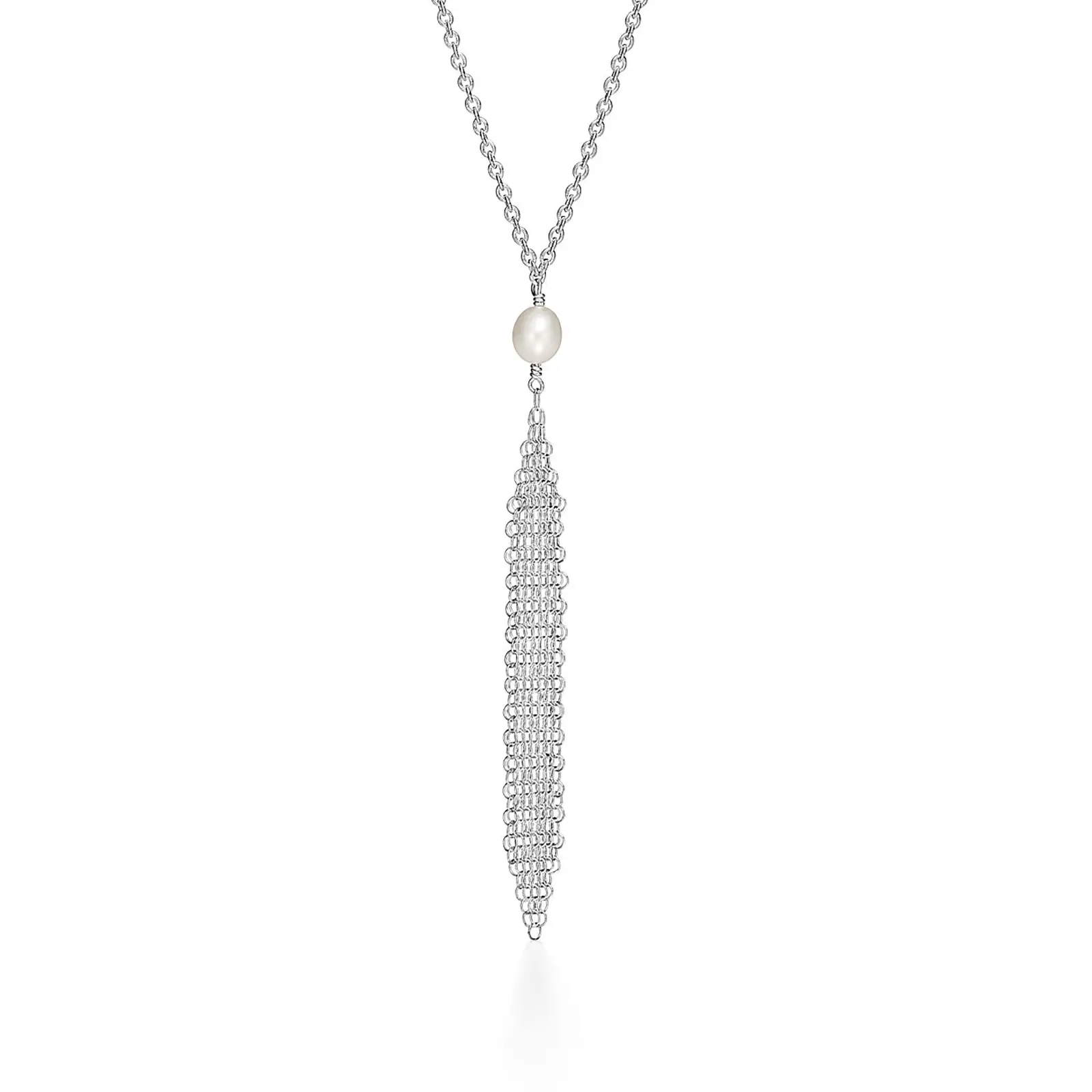 The form is malleable and ergonomic in the way it drapes over the body’s contours. Tassel pendant in sterling silver with a freshwater cultured pearl. On a 16″ chain. Pearl, 4.5-5 mm. Original designs copyrighted by the Nando and Elsa Peretti Foundation.