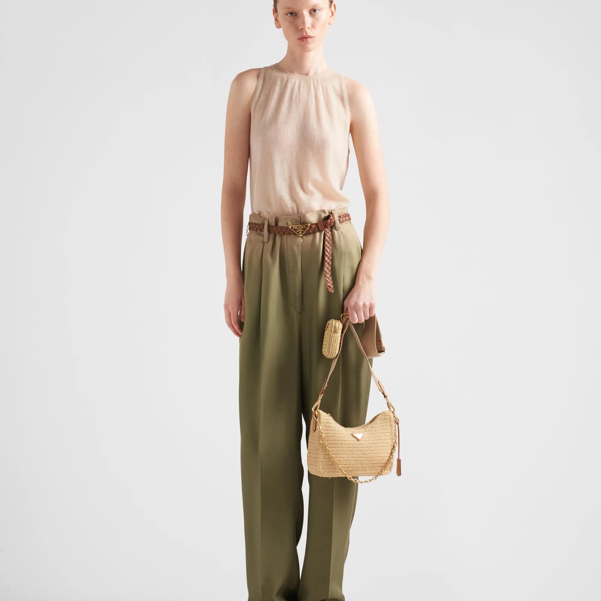 Removable raffia zipper pouch with Re-Edition key ring