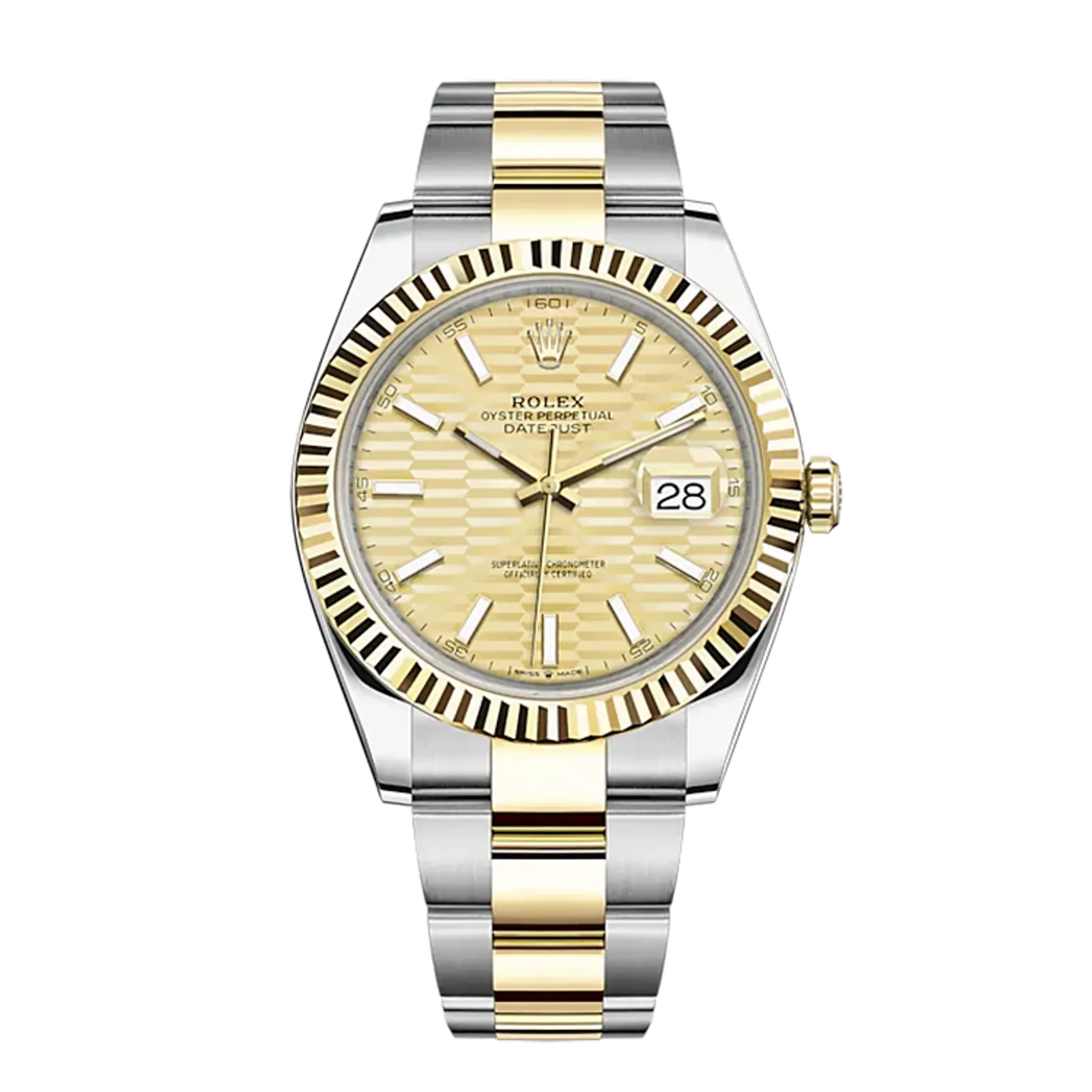 Rolex Datejust 41 Yellow Gold/Steel Golden Fluted Motif Index Dial Fluted Bezel Oyster Bracelet 126333-0021 CLEAN