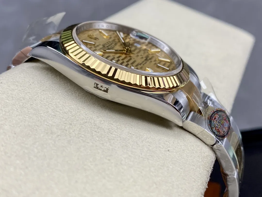 Fake Rolex Replica Watch Datejust 41 Yellow Gold/Steel Golden Fluted Motif Index Dial Fluted Bezel Oyster Bracelet 126333-0021