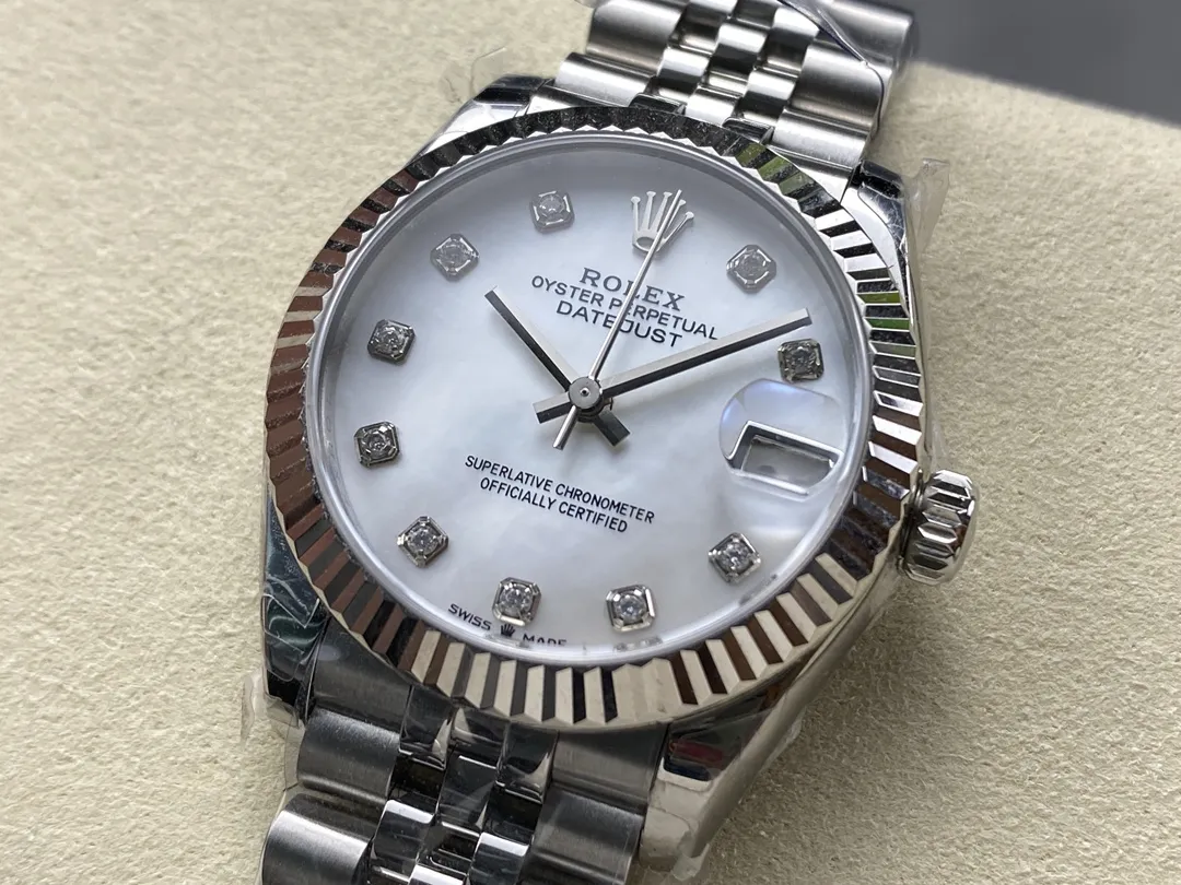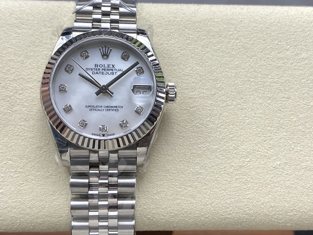 Fake Rolex Replica Watches Datejust 31 White Gold/Steel White Mother Of Pearl Diamond Dial & Fluted Bezel Jubilee Bracelet M278274-0006