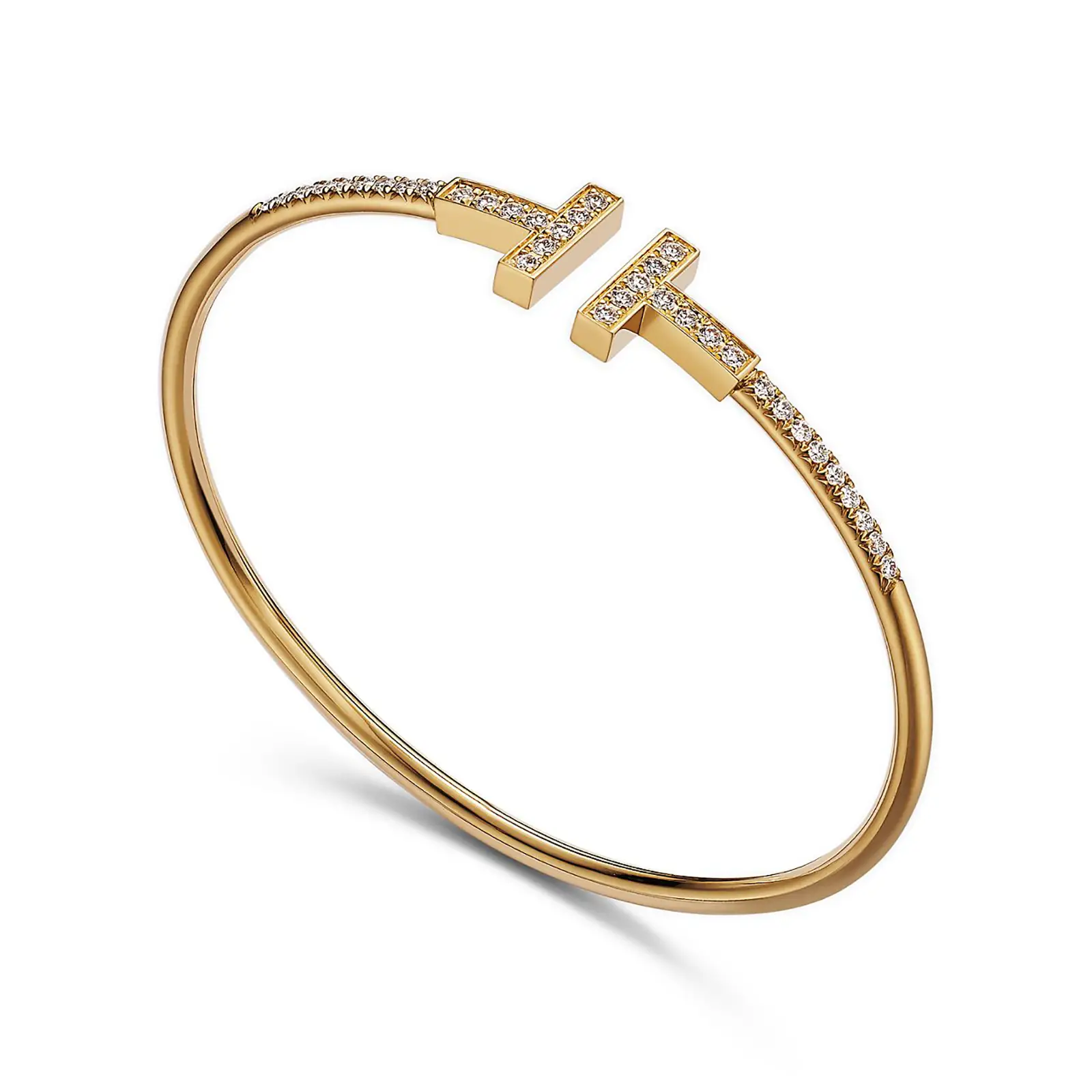 Tiffany Jewelry Tiffany T Pave Diamond Wire Bangle in Yellow Gold