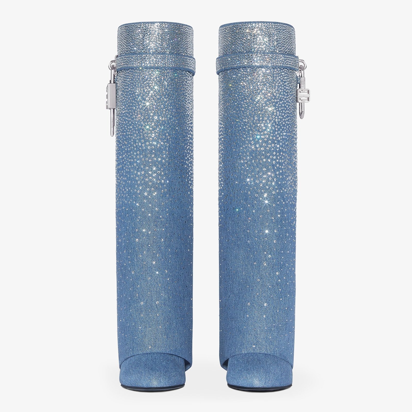 Matching denim band with a GIVENCHY metal clasp and 4G padlock on the right boot.