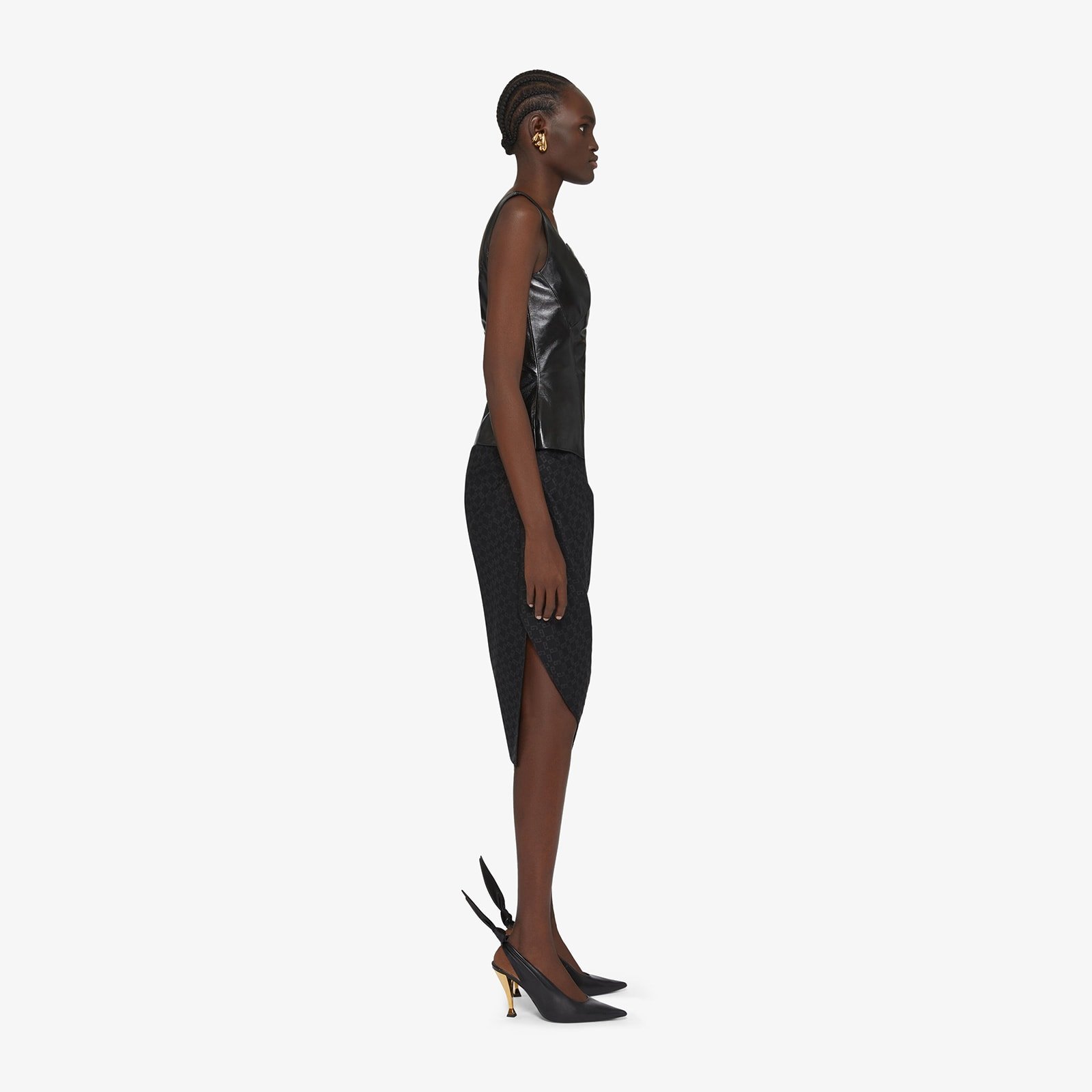 Peplum top in nappa leather.