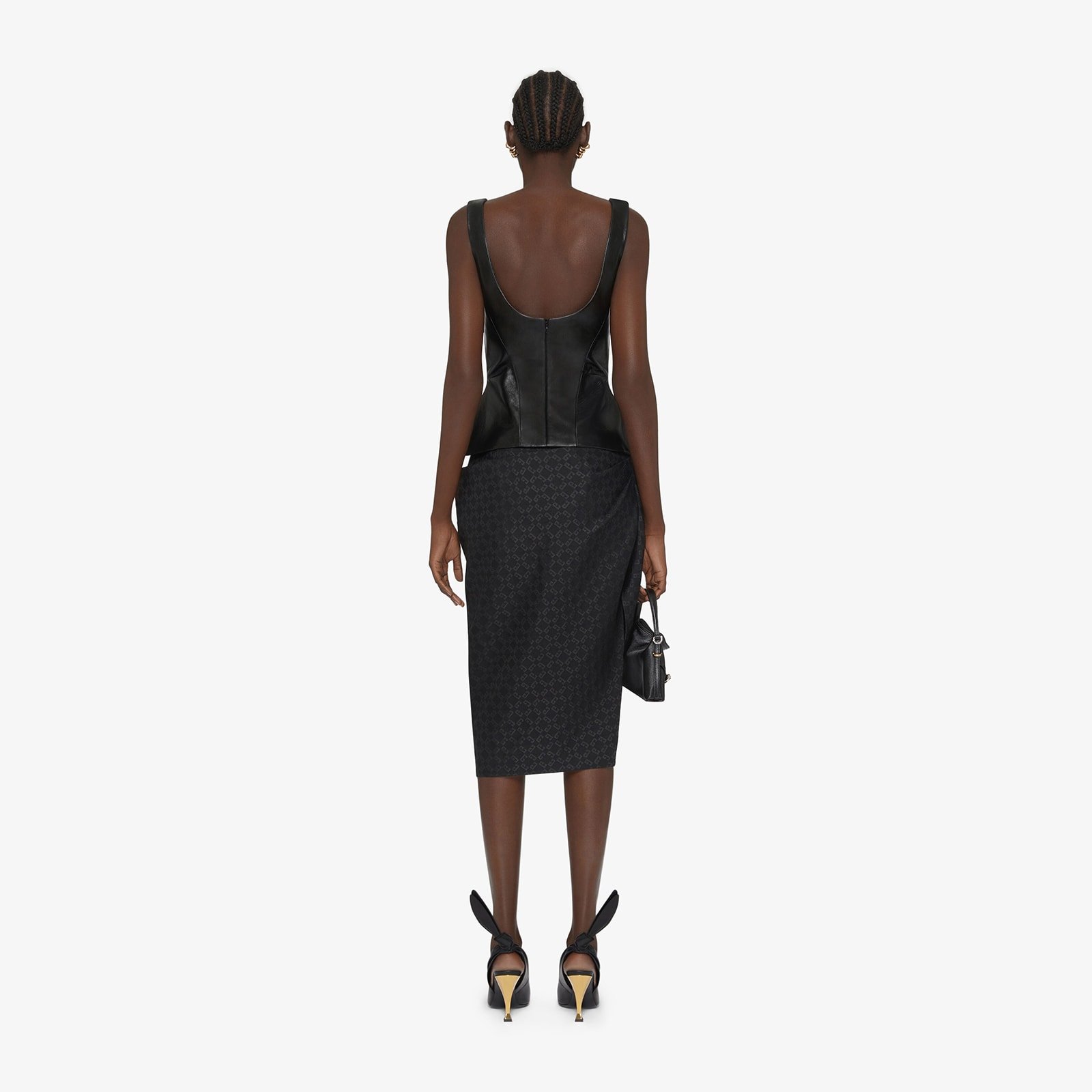 Givenchy Women's Cropped Bustier Top In Leather With Draped Detail