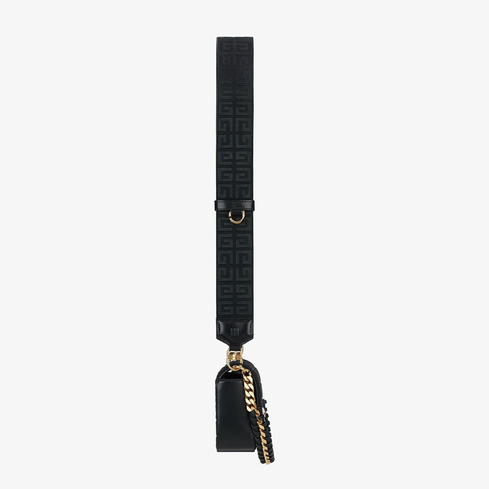 Wide removable shoulder strap in 4G canvas with leather details, debossed 4G emblems and metal ring.