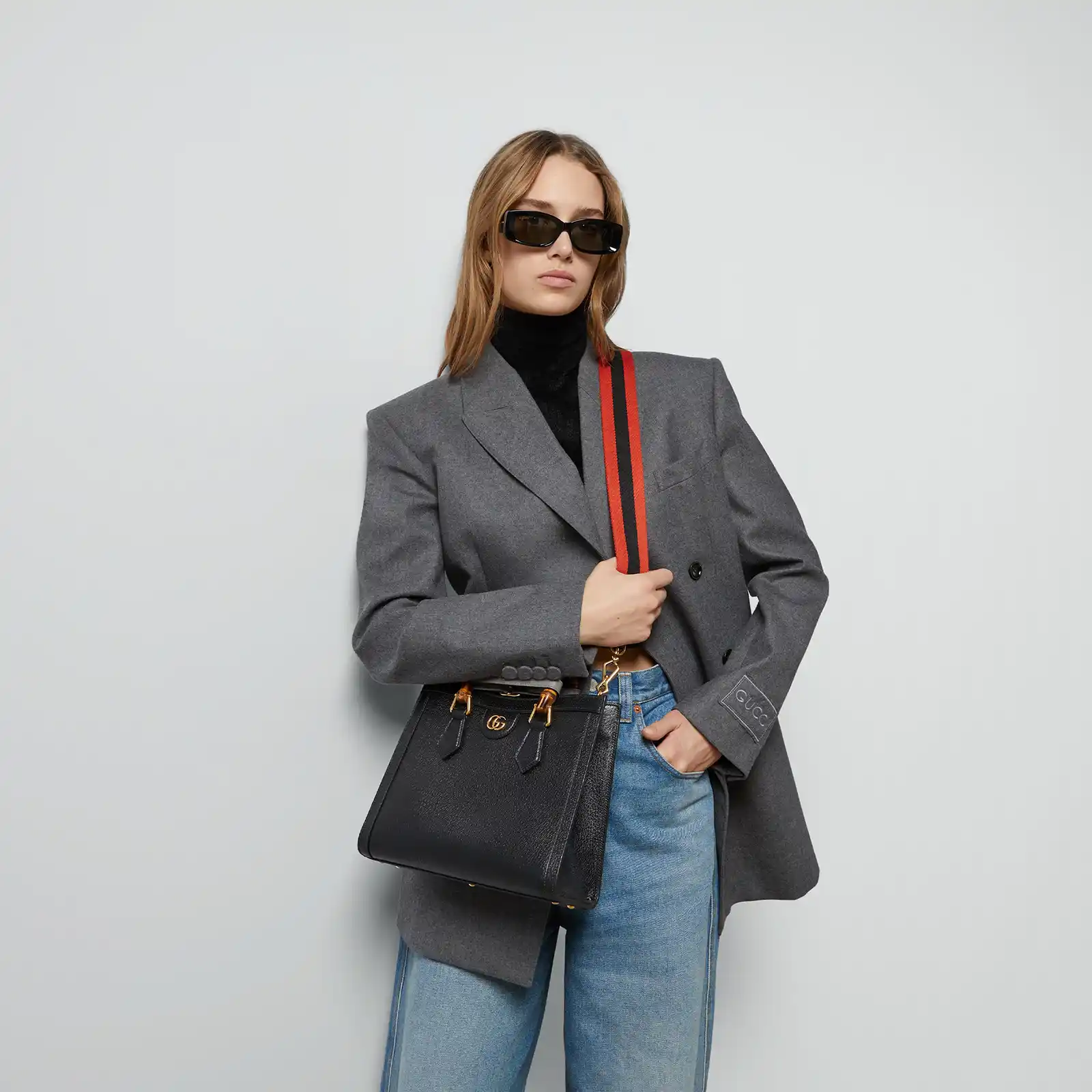 Combining recognizable elements of the House, the small tote bag is defined by its bamboo handles and Double G hardware. Crafted from black leather, the accessory is further accentuated by two colored belt details, a playful reference to the bands used to keep handles in shape.