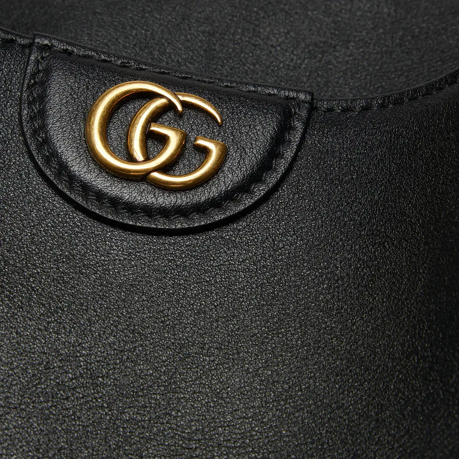 Combining recognizable elements of the House, the small shoulder bag is defined by its bamboo handles and Double G hardware. Crafted from black leather, the accessory is further accentuated a contrasting leather shoulder strap in grey.