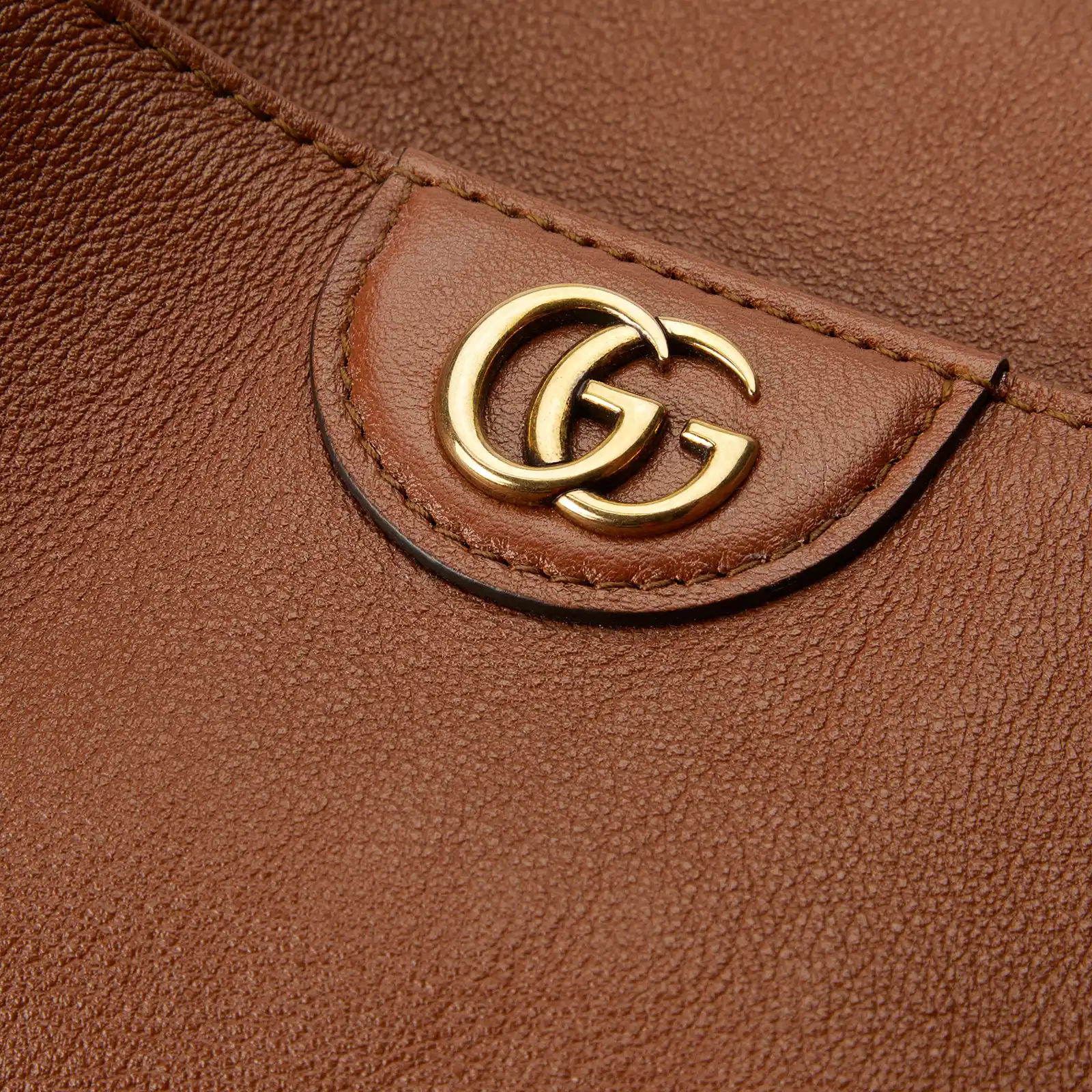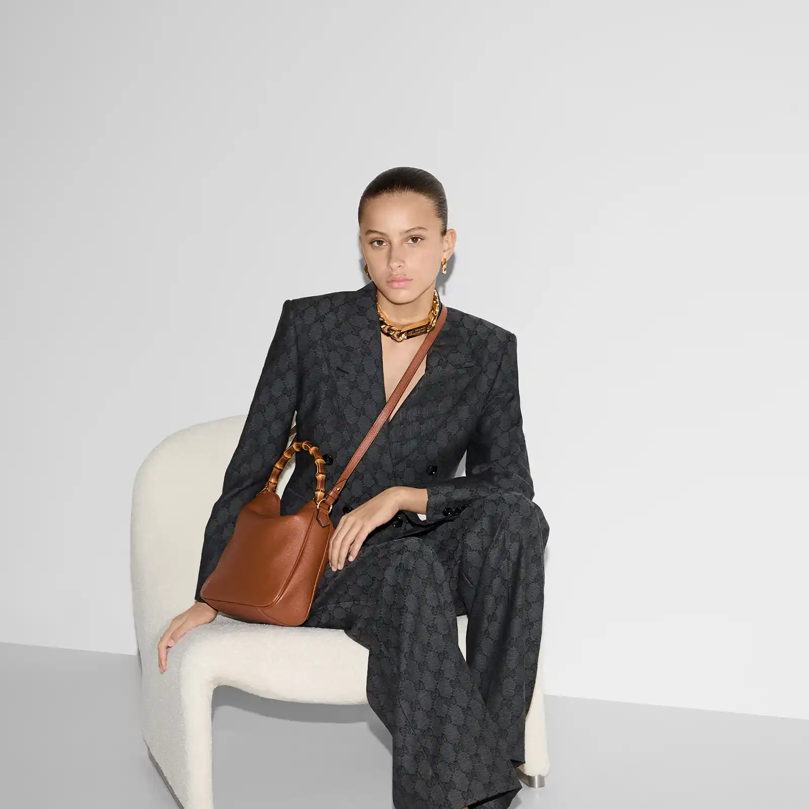 Combining recognizable elements of the House, the small shoulder bag is defined by its bamboo handles and Double G hardware. Crafted from brown leather, the accessory is further accentuated a tonal leather shoulder strap.