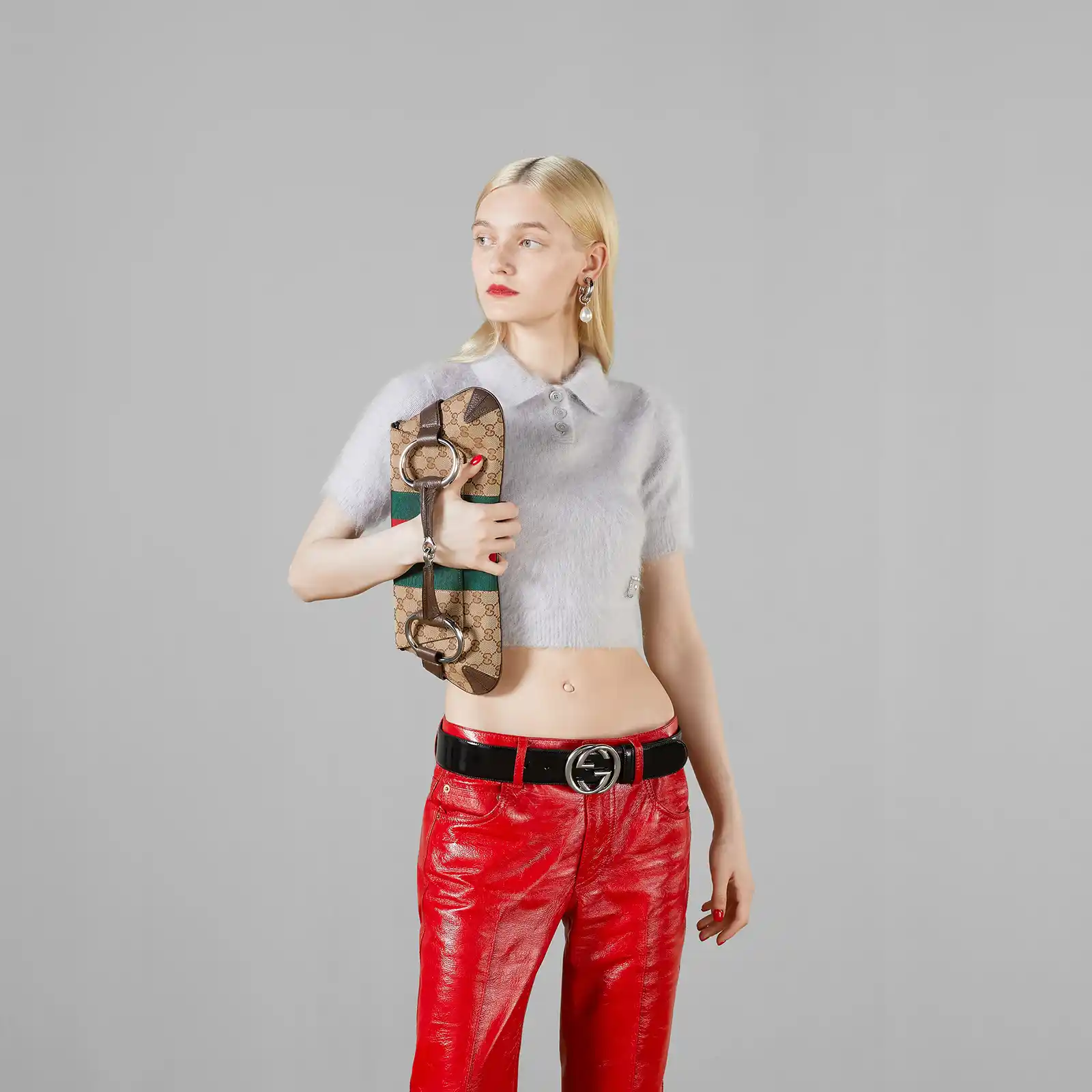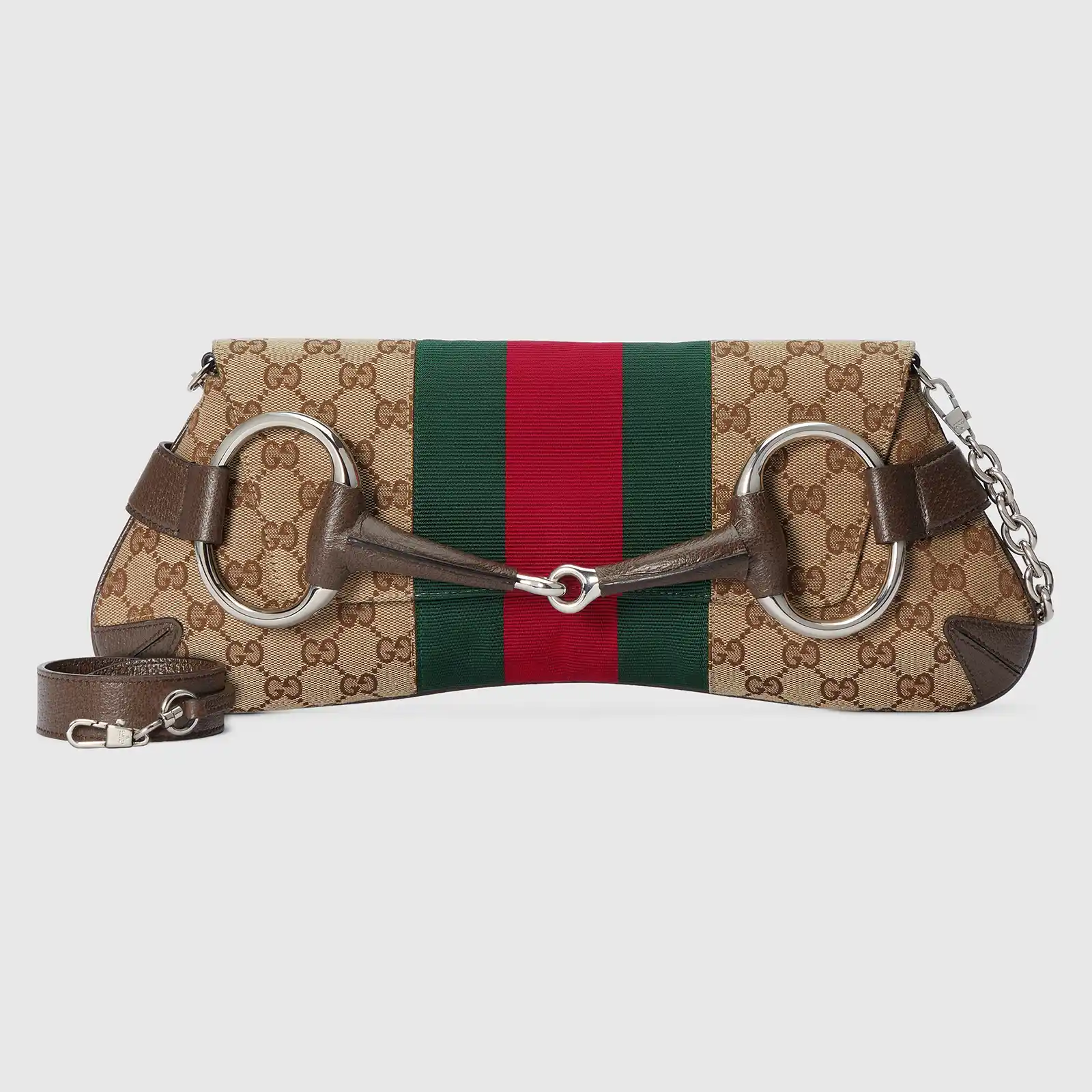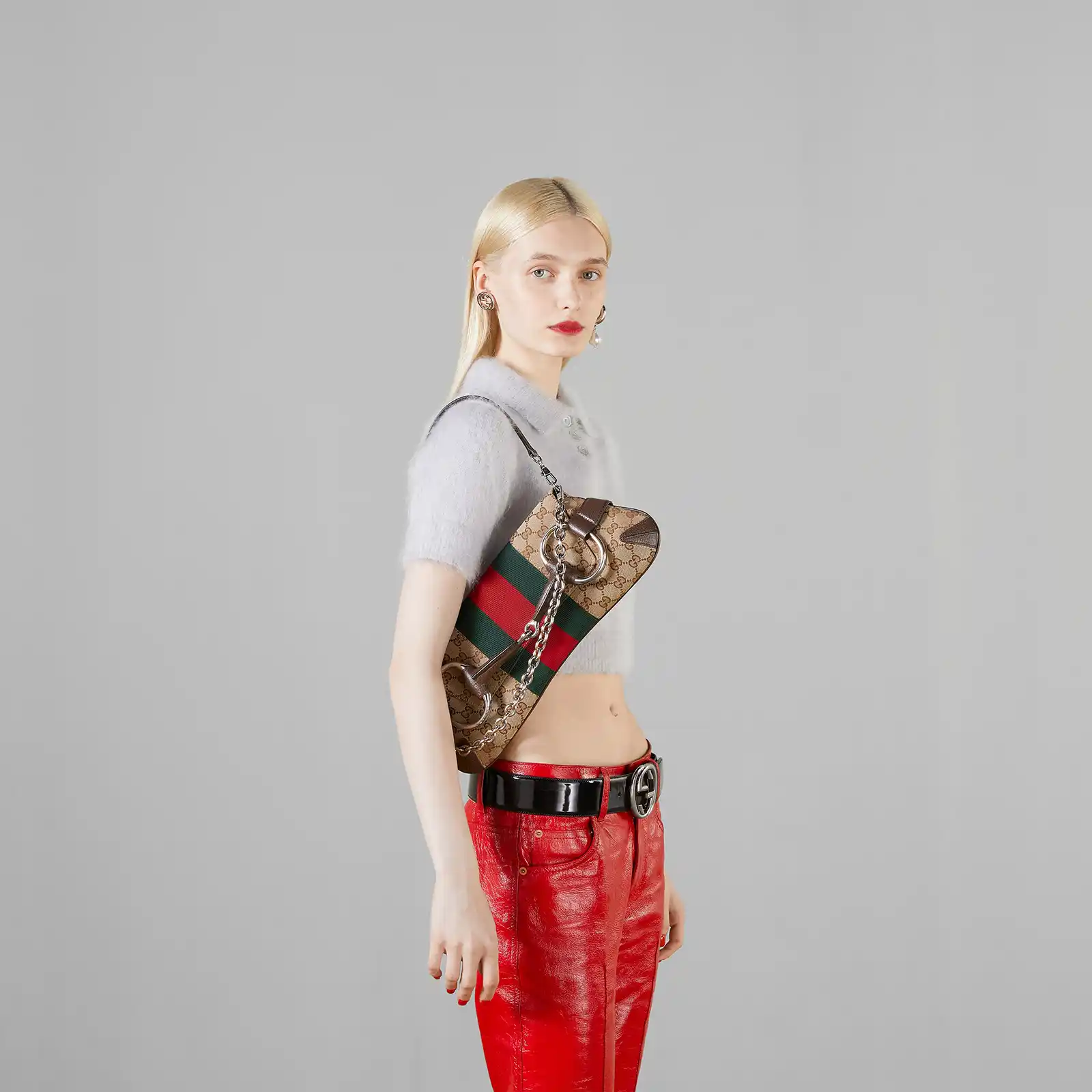 Gucci successfully recalls its past by connecting the archives to the present day. Adorned with a maxi Horsebit, first made popular during the early ‘2000s, this silhouette continues to be one of the most recognizable handbags of the House. Revisited for the Fall Winter 2023 collection, it is presented in various colors and textures that follow a contemporary approach.