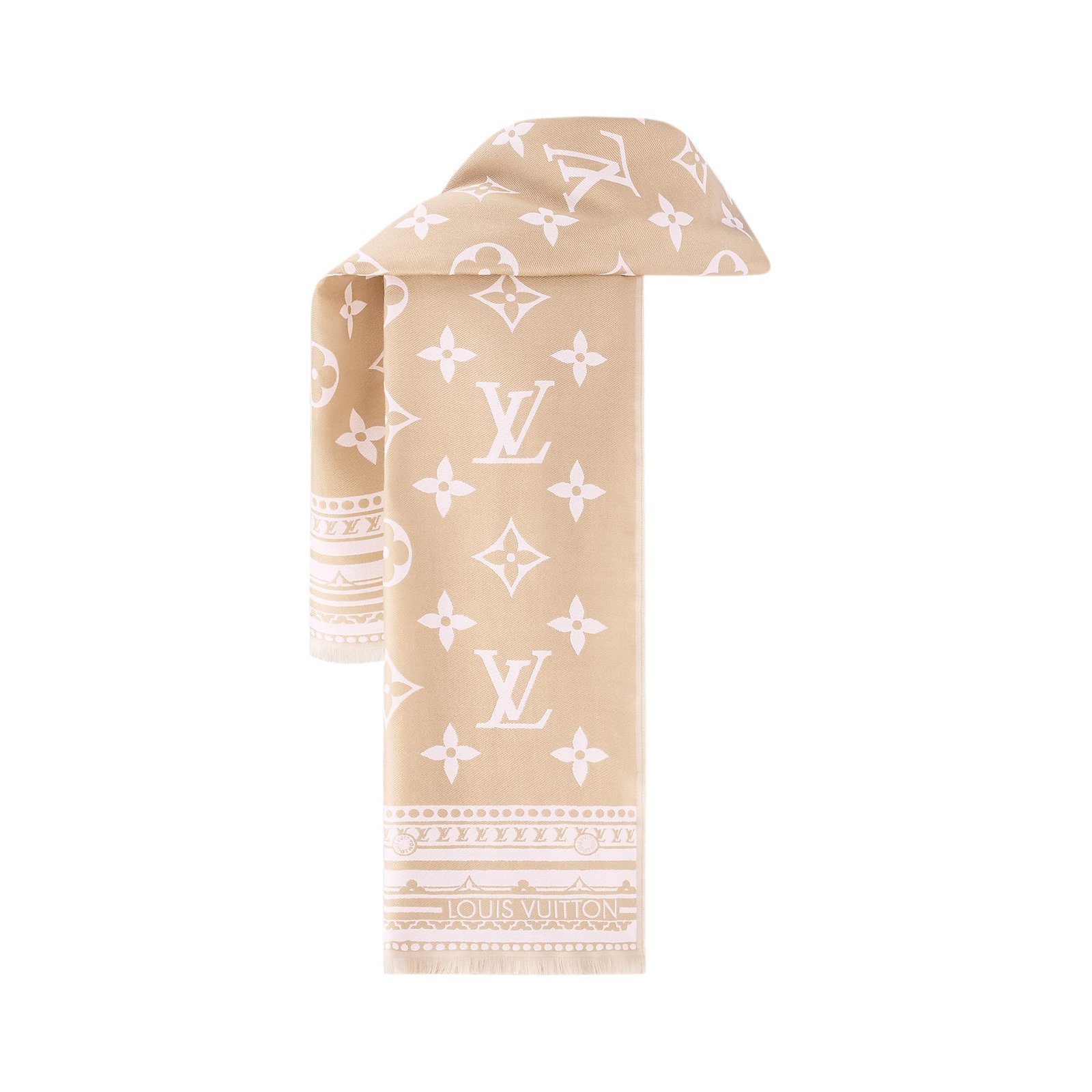 An ideal accessory for lovers of House signatures, the Amazingram stole features a contrasting Monogram motif and intricate borders inspired by Louis Vuitton’s iconic trunks. A meticulous