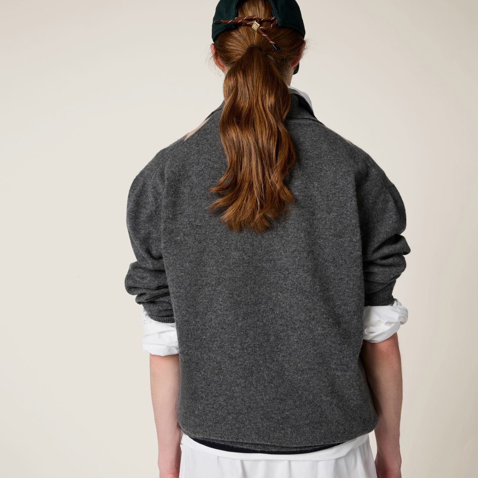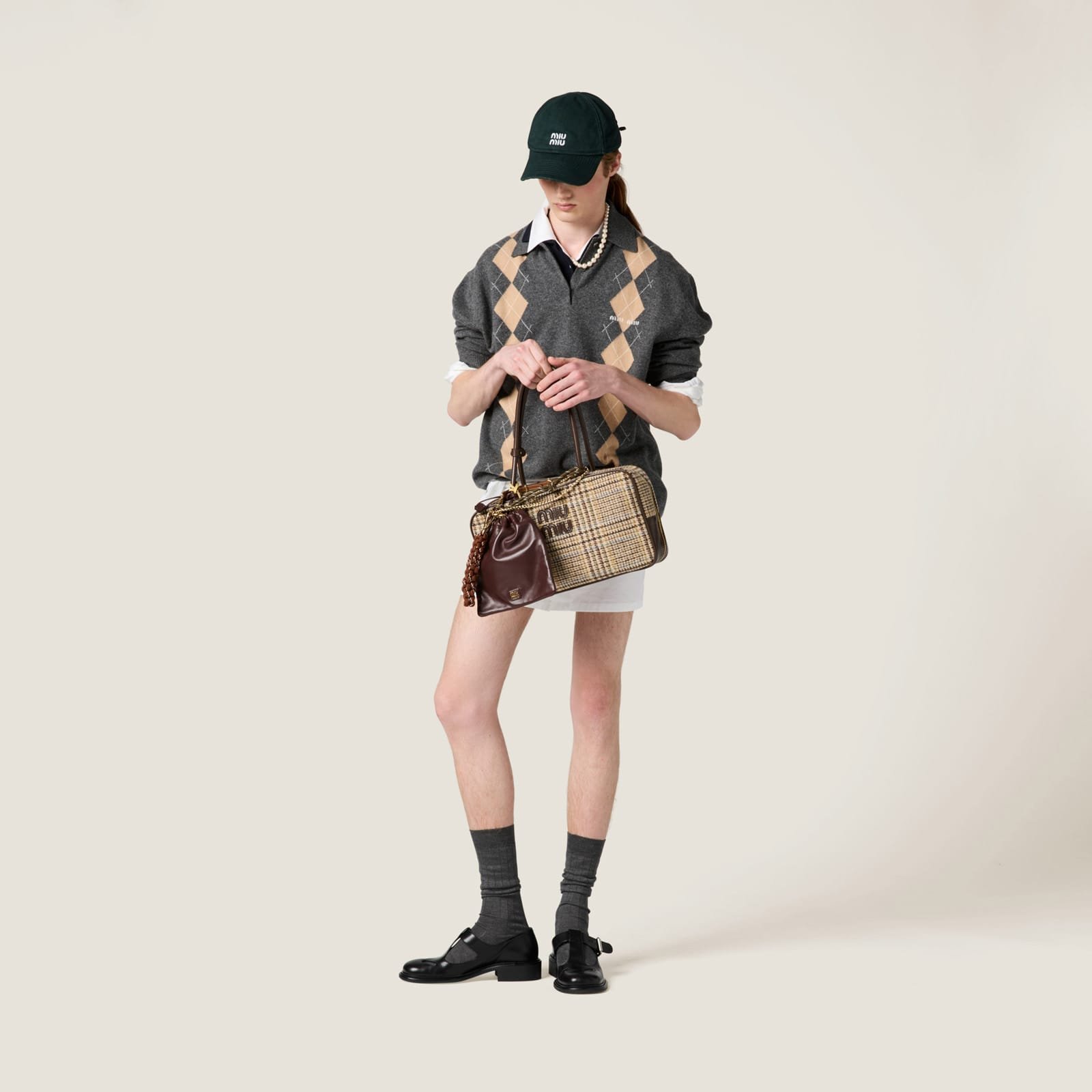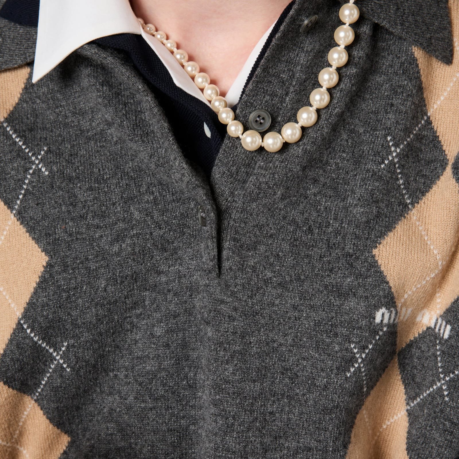 A refined intarsia motif meets an argyle pattern on this cashmere knit polo shirt. The Miu Miu logo completes the design with its iconic signature touch.