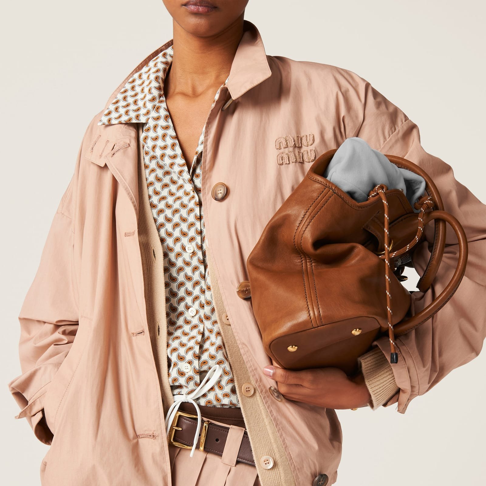Retro inspirations are combined with contemporary suggestions in this poplin blouson jacket. Horn buttons stand out on the jacket, thanks to their contrast in color and texture.