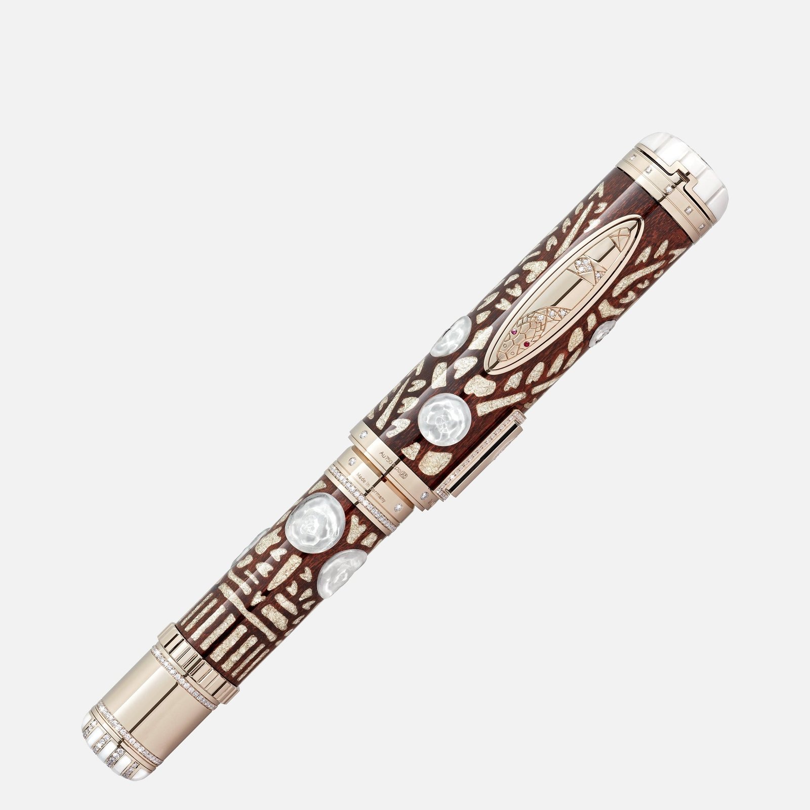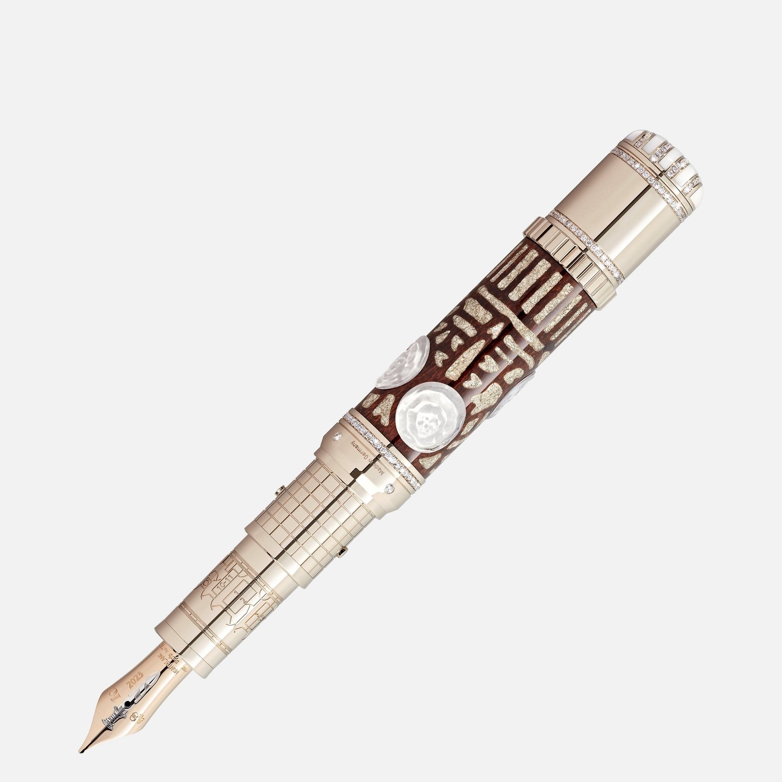 The name ‘Orient Express’ conjures magic and myth from a time when sophisticated travellers heeded the siren’s call of exotic lands.It awakens visions of a train designed for glamour and sumptuous living.It unites a longing for adventure, for the distant, mysterious lands, with total immersion in a world of lavish luxury.It all began with Georges Nagelmackers, a visionary who dreamed of travelling comfortably and unimpeded overland from Paris to Constantinople.His dream finally became reality on 4 October 1883.On that day, an elegant crowd thronged the Gare de l’Est in Paris to celebrate with great fanfare the maiden run of one of the most luxurious train ever created.The myth of the Orient Express had begun. This icon of stylish rail travel is the inspiration for the Montblanc High Artistry A Journey on the Orient Express Limited Edition 10.Its overall design is an homage both to the interior decoration crafted by Rene Lalique and to Agatha Christie’s novel Murder on the Orient Express. A passionate globetrotter, Agatha Christie was one of the most famous writers who both travelled on and wrote about the Orient Express, immortalizing the train in her 1934 crime novel Murder on the Orient Express featuring a cast of inscrutable characters and almost indecipherable clues.The design of this editionmakes many references to the details of the fictional case.Thecap and barrel are crafted from stained sycamore wood, decorated with handcrafted gold-leaf and crystal flower inlays modelled on the train’s luxurious interiors including the wood marquetry of Rene Prou and the molded glass and silver inlays by Rene Lalique.A special push opening mechanism is opulently adorned with brilliant cut diamonds. The cap top in white chalcedony is inlaid with a Montblanc emblem in solid Au 750 gold outlined with a profusion of brilliant cut diamonds.The stone can be opened to reveal a “broken” miniature clock with a white enamel dial, hidden inside with the time frozen at “01:15” when the murder happened.The cap top ring is set with 12 stones, evoking the number of times the victim was stabbed, while the solid Au 750 bi-colour gold nib is embossed with the murder weapon, a dagger.The forepart is engraved with the floorplan of cabin 2 where the murder occurred.The number “2” also appears on the solid cold cone, decorated with brilliant cut diamonds and inlays made from white chalcedony, with a screwing gear mechanism for piston filling.The iconic oval window in the dining car is the inspiration behind the “hidden” clip, recessed into the cap, in solid Au 750 gold embellished a hand-engraved serpent body and head is partly set with brilliant cut diamonds and two rubies as eyes.The serpent is a reference to the Montblanc Writers Edition 1993 honouring Agatha Christie that featured a clip adorned with a serpent. With signature gold and/or signature gold-coating, Montblanc evokes the enlightened shade of yellow gold which has become an appreciated tone for the Maison’s writing instruments.