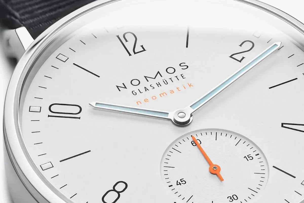Ahoi in a somewhat smaller size, thanks to the ultra-thin automatic caliber DUW 3001 with the NOMOS swing system (visible through the sapphire crystal glass back). Ahoi neomatik is water resistant to 20 atm, so suitable for diving, equipped with a crown guard, its back fixed with six screws-all in all: elegant, sporty, and classic in a diameter of 36 millimeters.