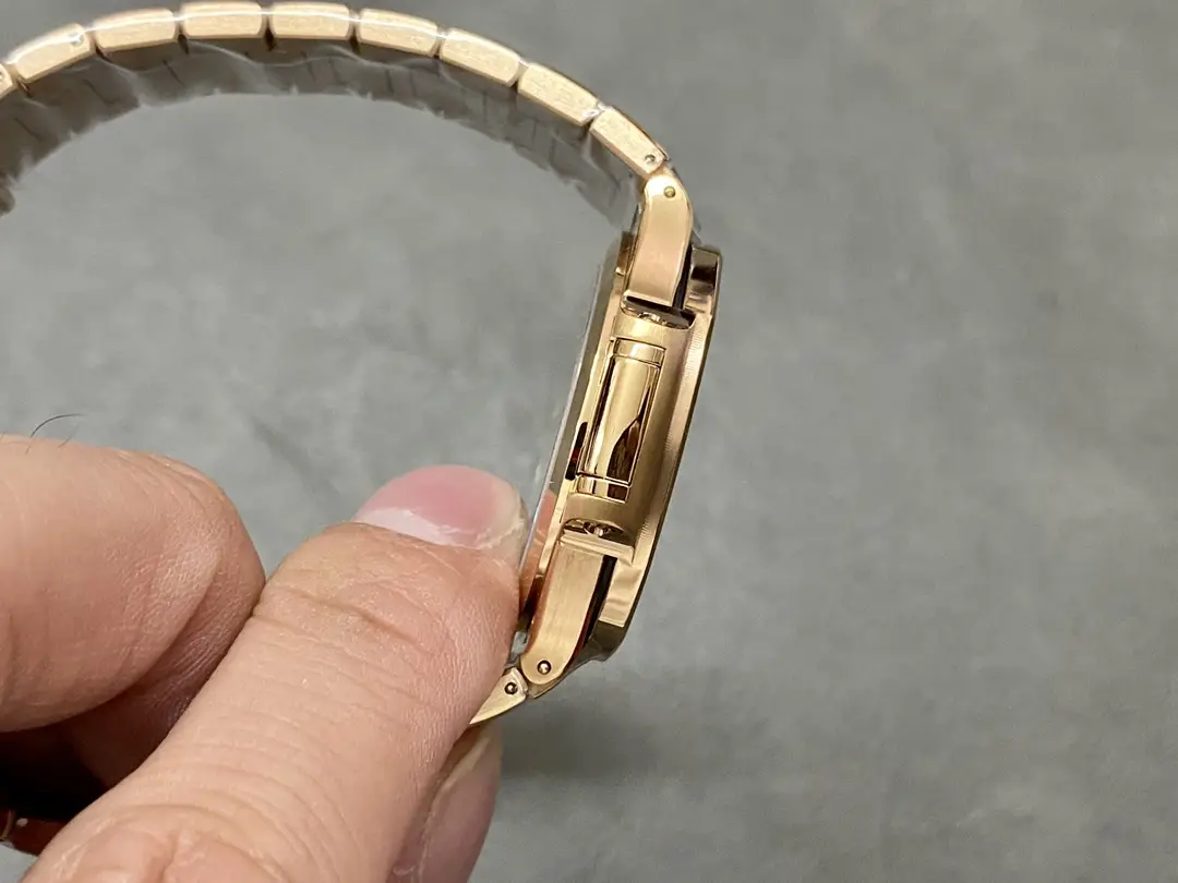 The elegantly designed patek philippe replica Rose Gold with Fold-Over Clasp will look great on your wrist.