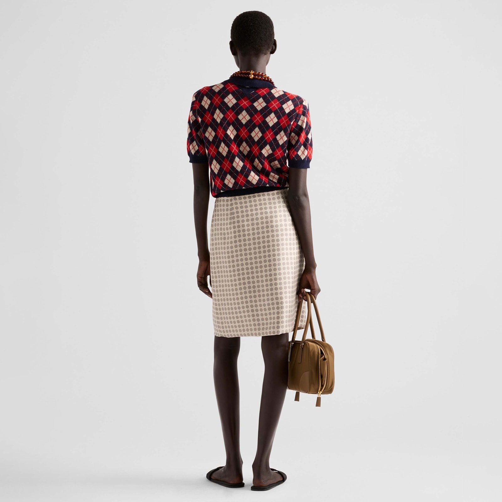 The menswear-inspired silhouette of this polo shirt combines classic details and retro influences. The intarsia knit garment made of cotton features an argyle motif and the simple yet iconic shape of the triangle logo.