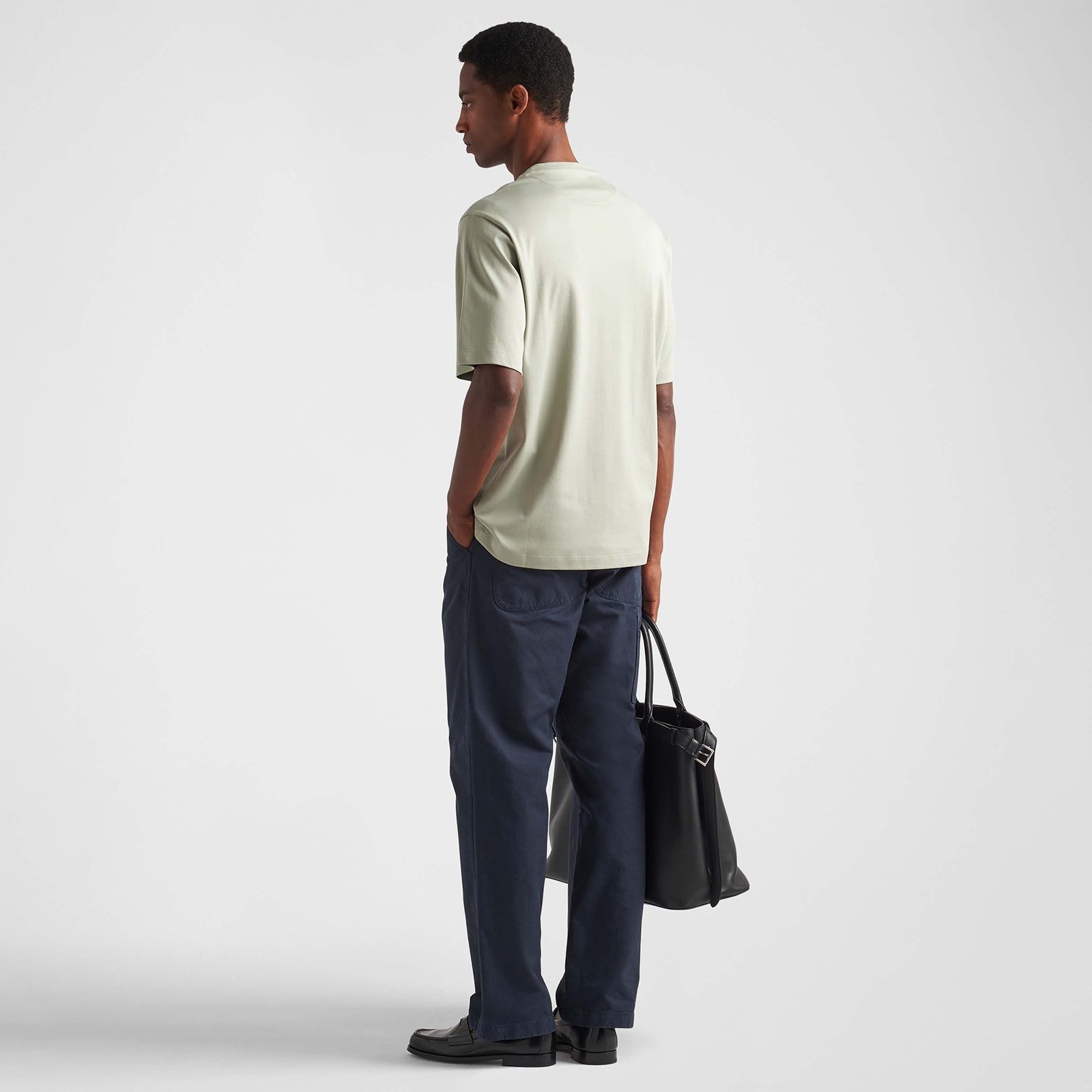This short-sleeved cotton tee with ribbed knit crew neck has an oversized fit. The garment is decorated with the iconic enameled metal triangle logo on the front.