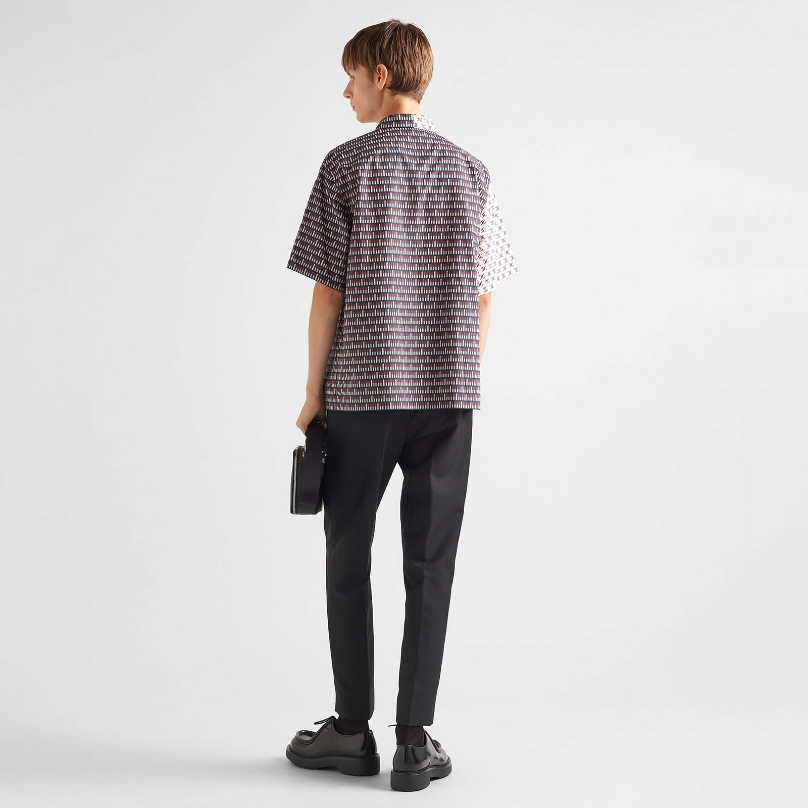 Strong graphic contrasts define Double Match shirts, animated by the dualities and contrasts emblematic of the brand. This cotton garment features a sporty oversized cut characterized by the distinctive bowling collar and enriched by the iconic Lipstick print contrasting with a geometric motif. The triangle logo printed on the breast pocket completes the silhouette with retro charm.