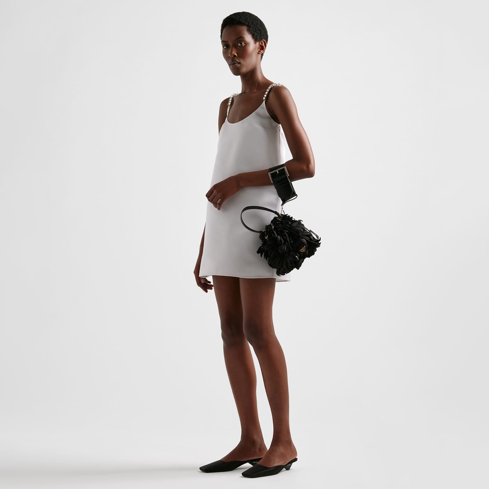 Prada Embroidered Double Satin Mini-Dress
