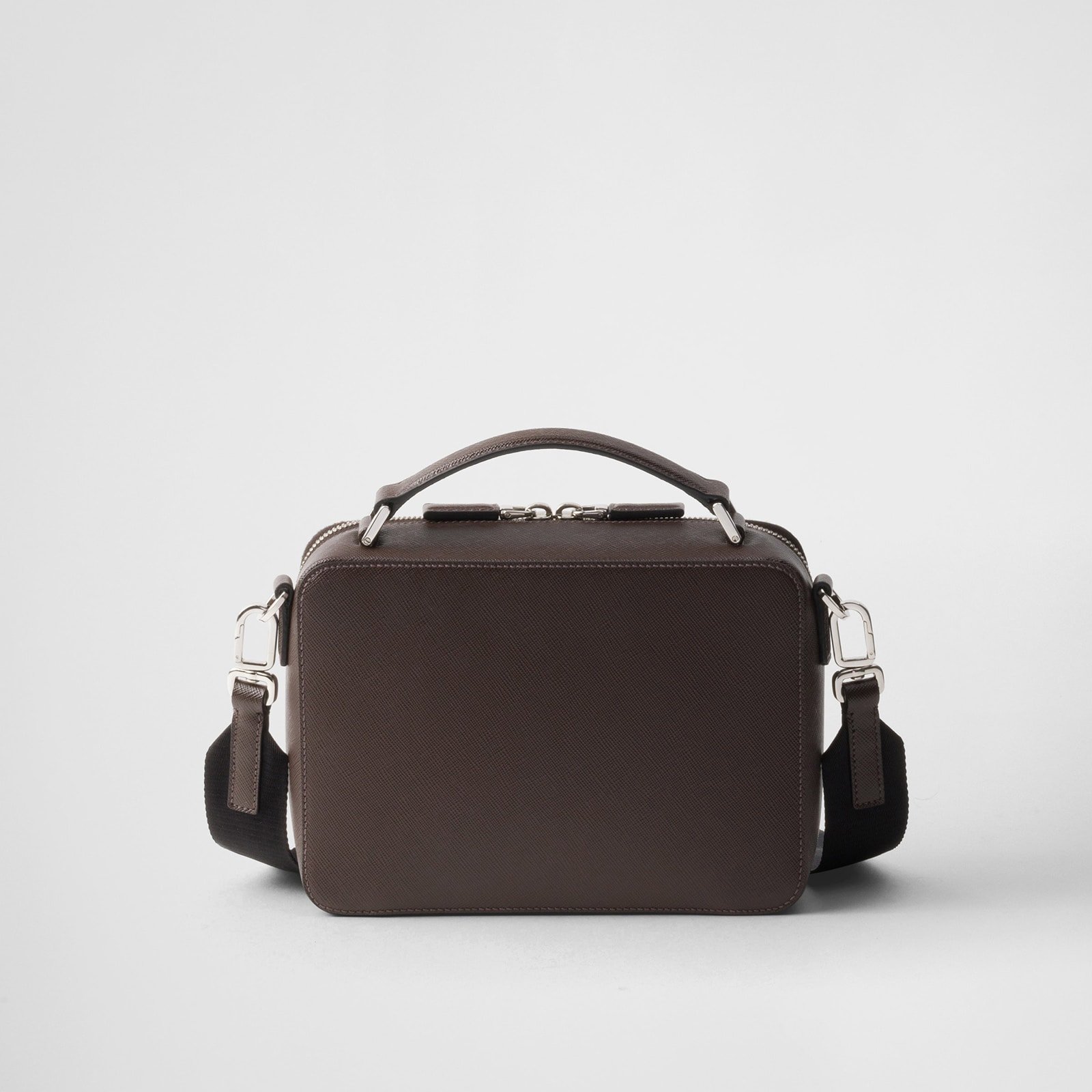 The Prada Brique bag in Saffiano leather stands out for its sleek lines. Saffiano leather, an iconic Prada material, is synonymous with luxury and identifies with traditional Italian leather goods production.