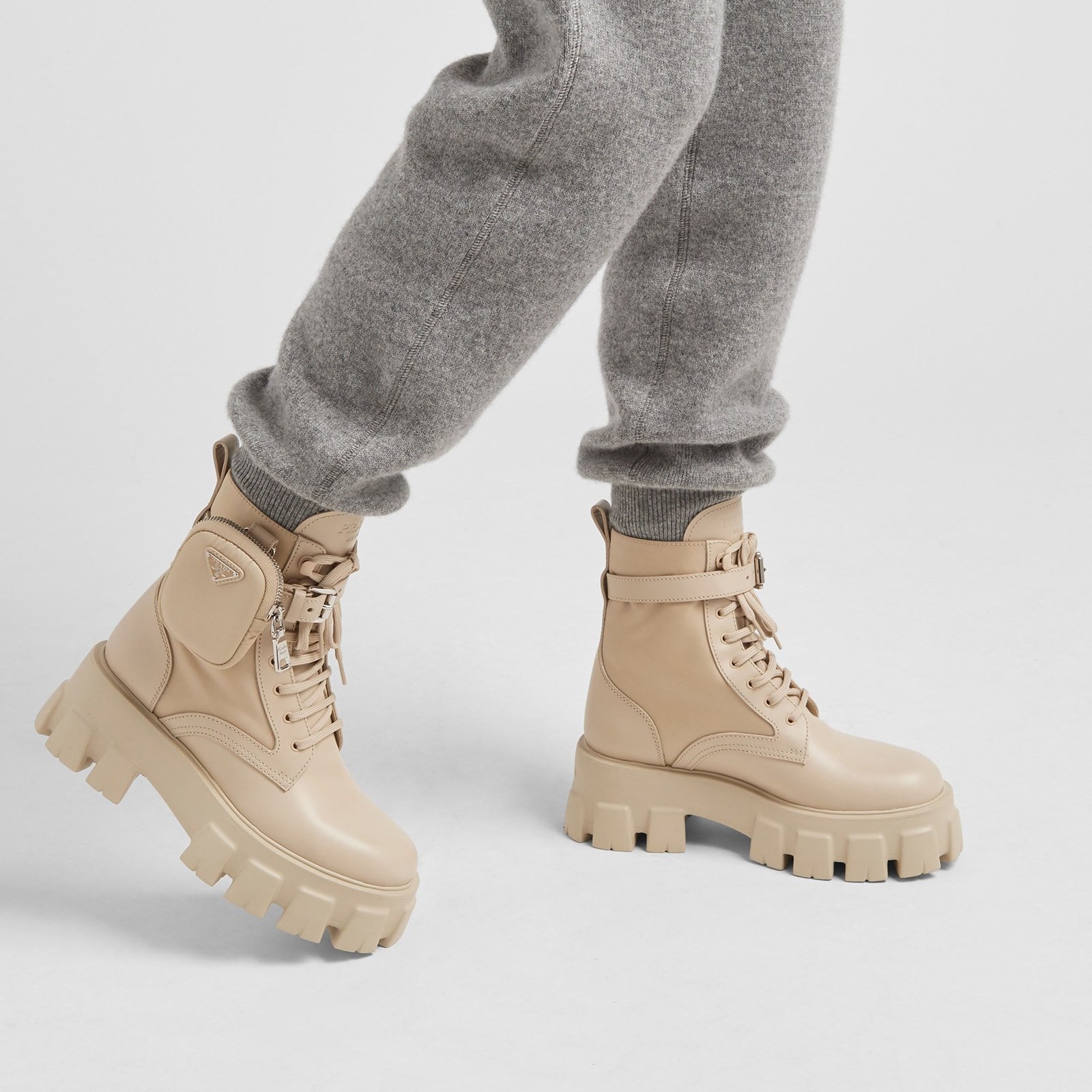 Prada Monolith Leather And Re-Nylon Boots With Pouch