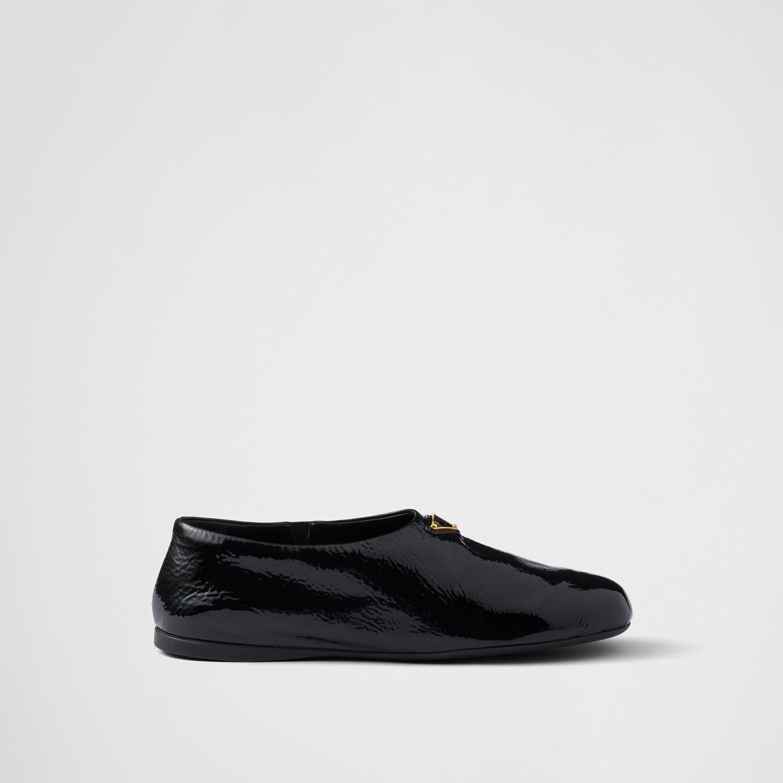 With sleek lines and details, these slip-on ballerinas embody contemporary refinement. The elegant feel of patent leather emphasizes the silhouette enriched with the iconic triangle logo.