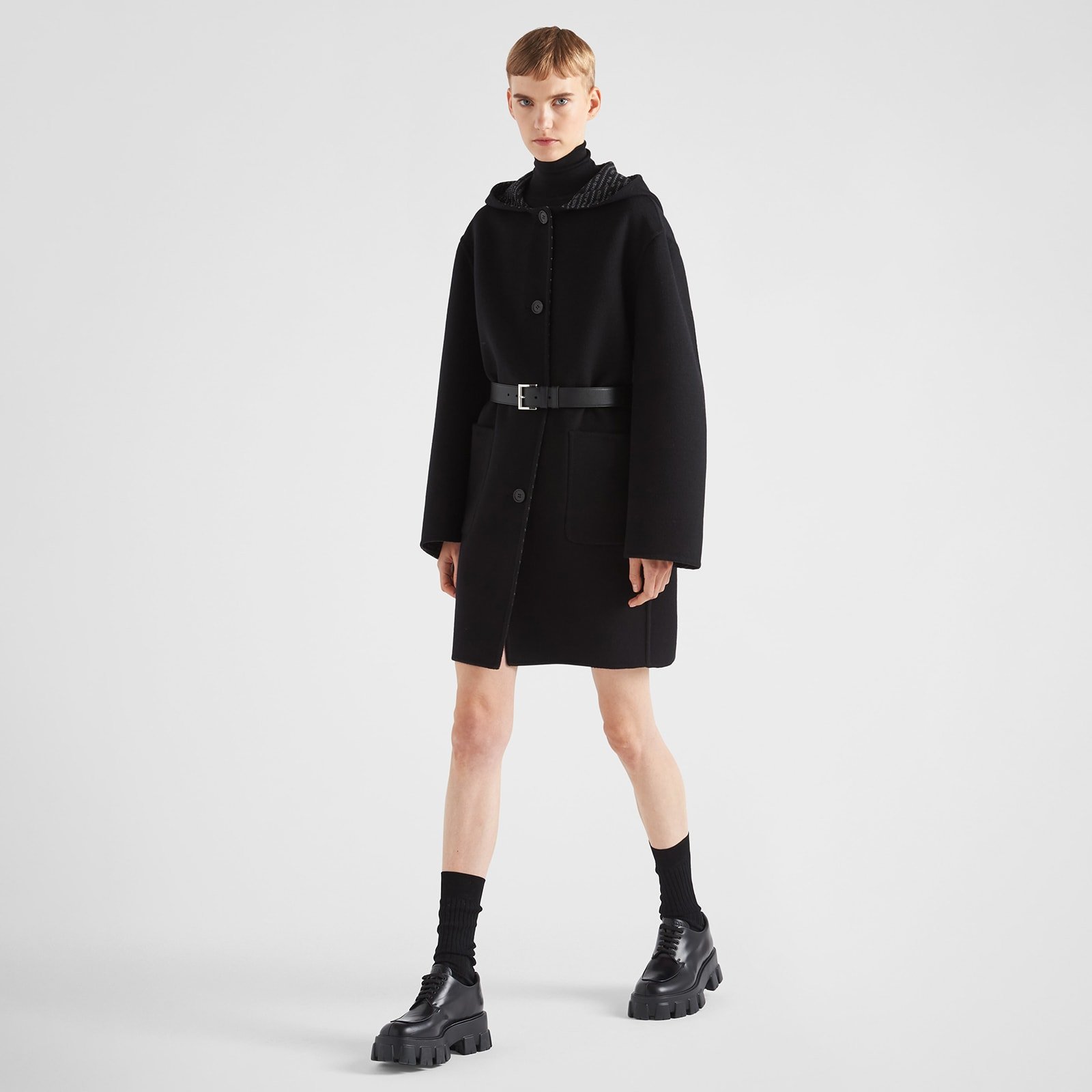 Sleek, minimalist lines characterize this double wool hooded coat with versatile yet elegant style.